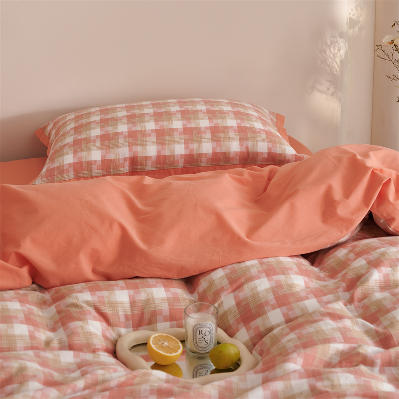 商品名称:榻尚家居 2024新款经典田园格子色织水洗棉系列 轻居 橘