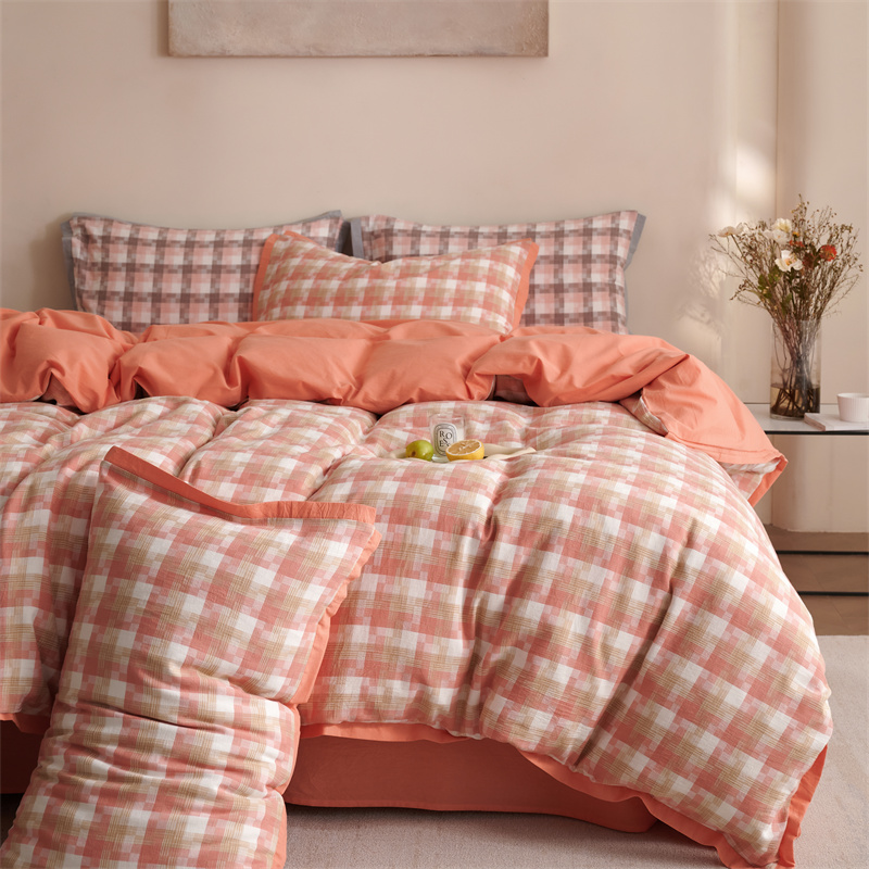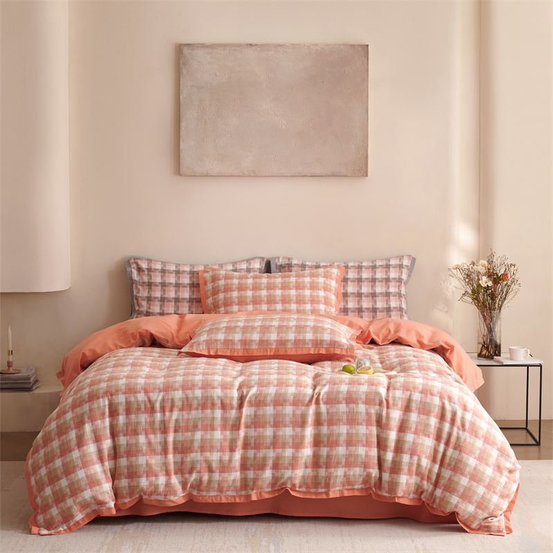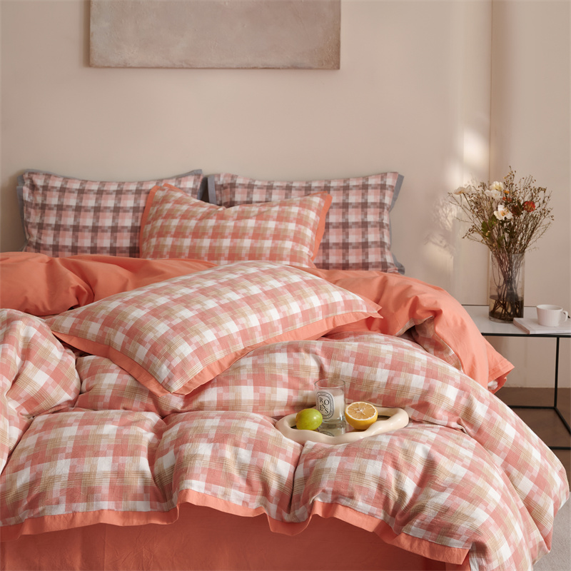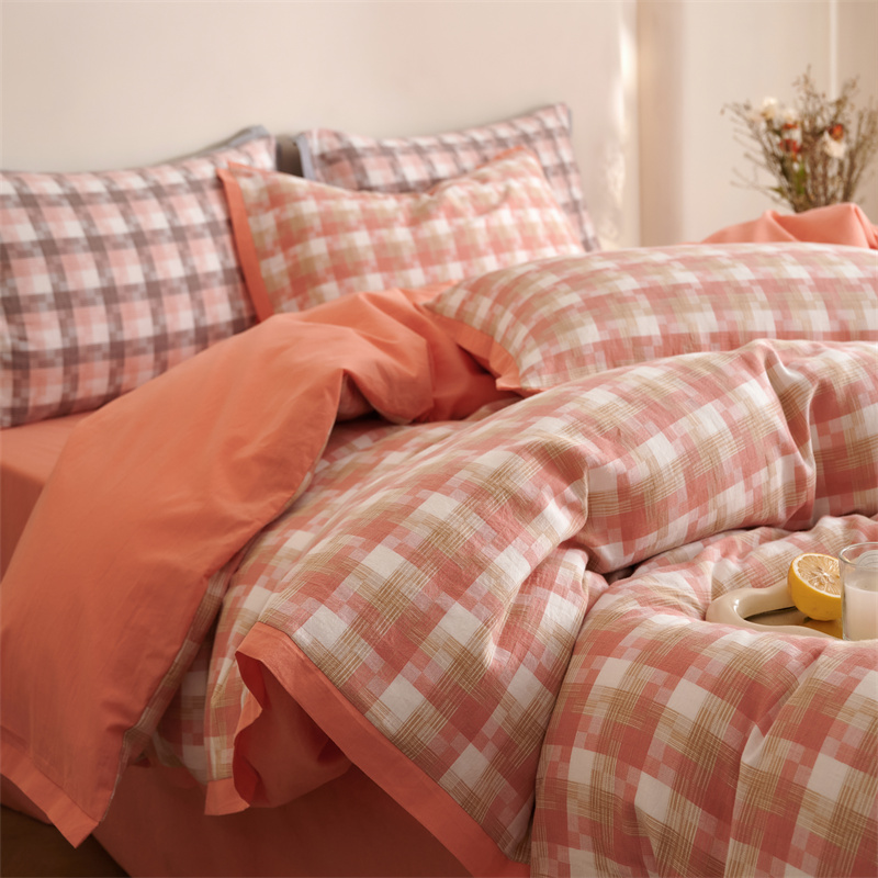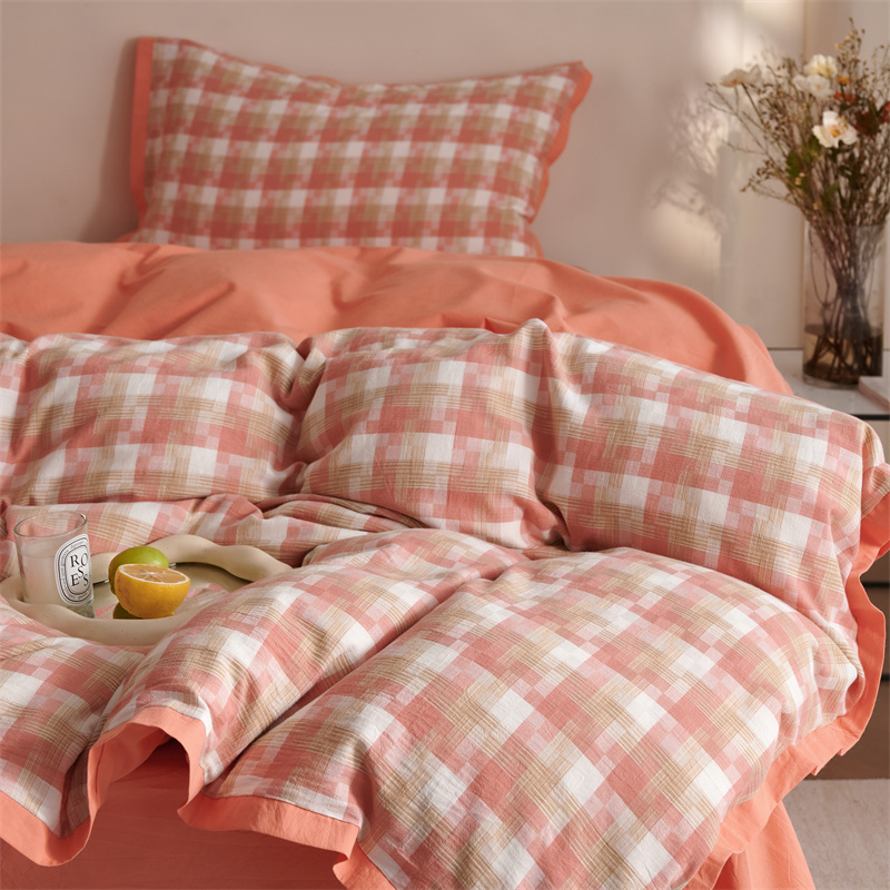 榻尚家居 2024新款经典田园格子色织水洗棉系列 轻居 橘