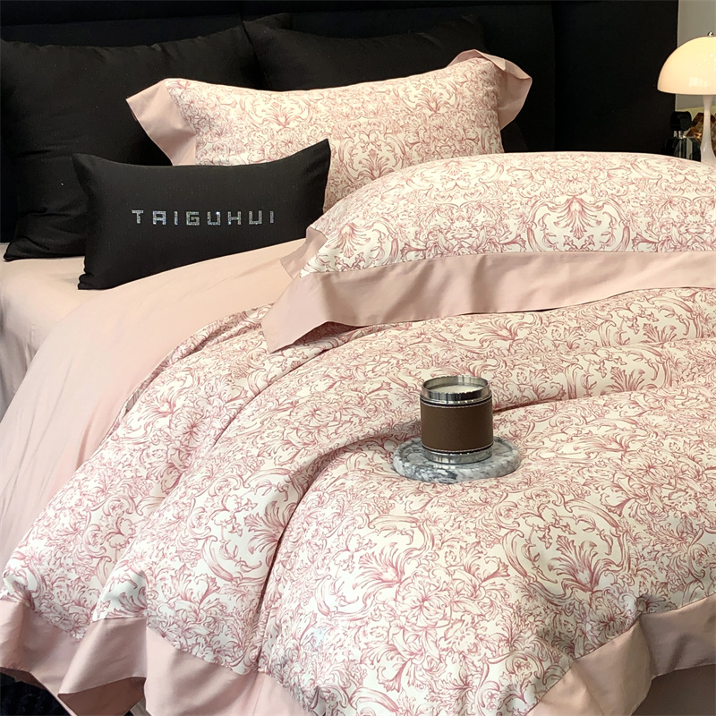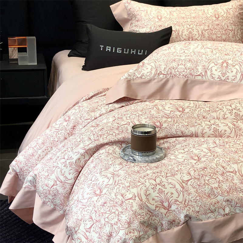 (总)太古汇家居 2025新款天丝棉磨毛花边四件套-巴黎晨曦系列,巴厘岛-粉色,巴厘岛-大象灰,巴厘岛-美拉德,巴厘岛-烟紫
