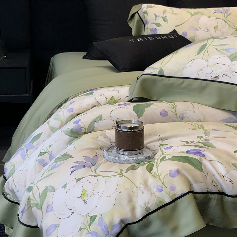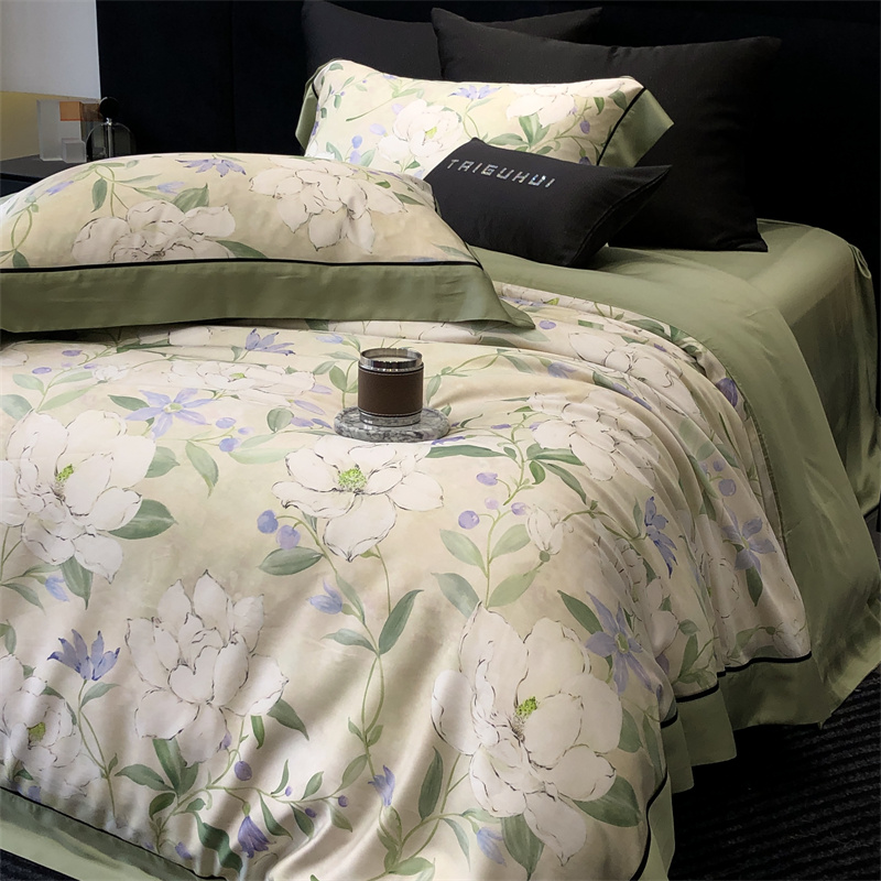 (总)太古汇家居 2025新款活性数码印花四件套,丽奥娜-松石绿,丽奥娜-杏子灰,丽奥娜-樱落紫,莉安娜-粉,莉安娜-卡其,莉安娜-绿,西莉娅-淡紫,西莉娅-粉色