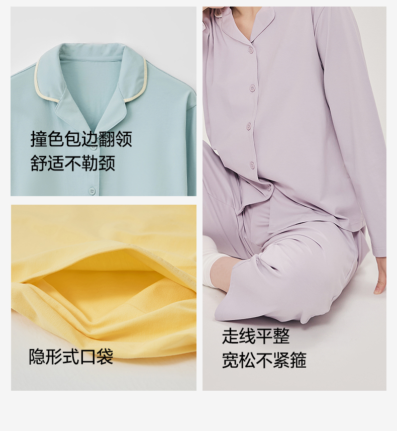 商品名称:EH 2024新款全棉男女情侣款家居服-男女款翻领 女款绛红色