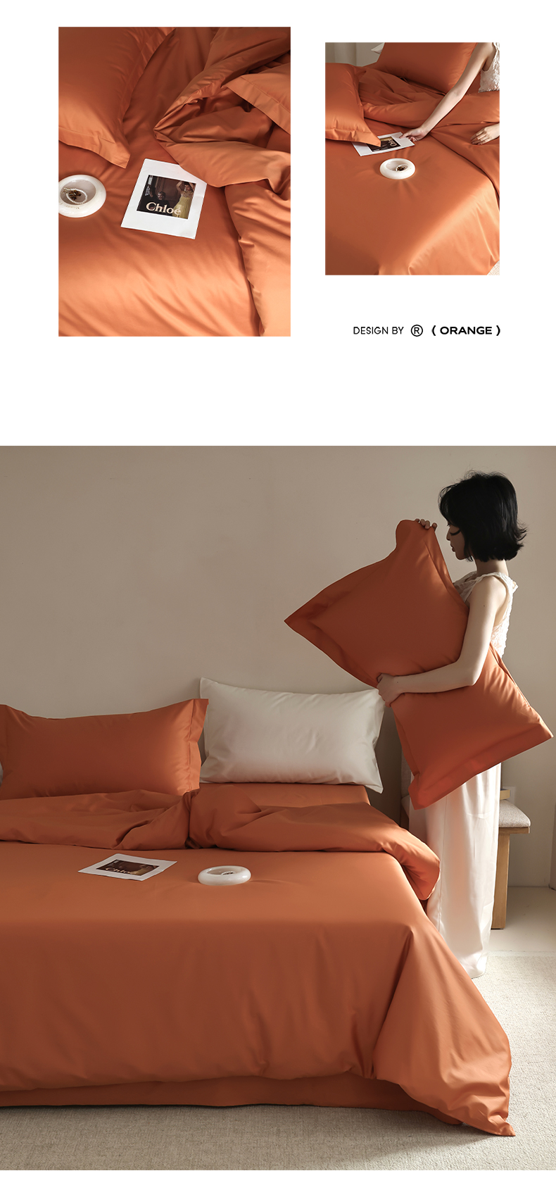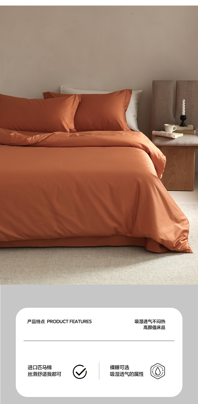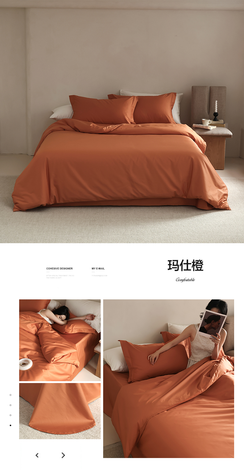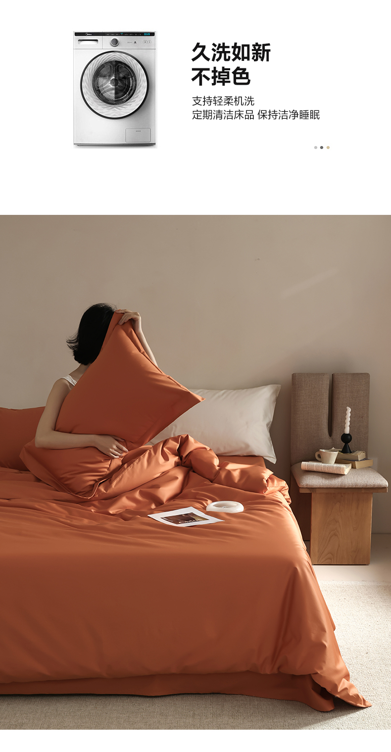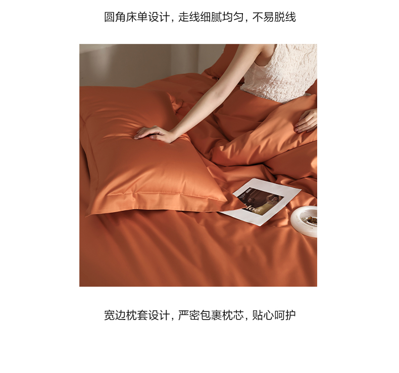 商品名称:轩和 2024新款70支埃及匹马棉纯棉纯色四件套风格二 玛仕橙