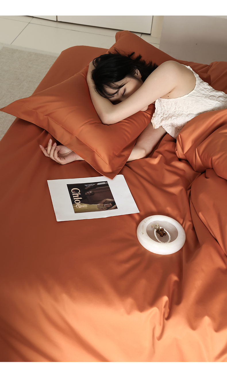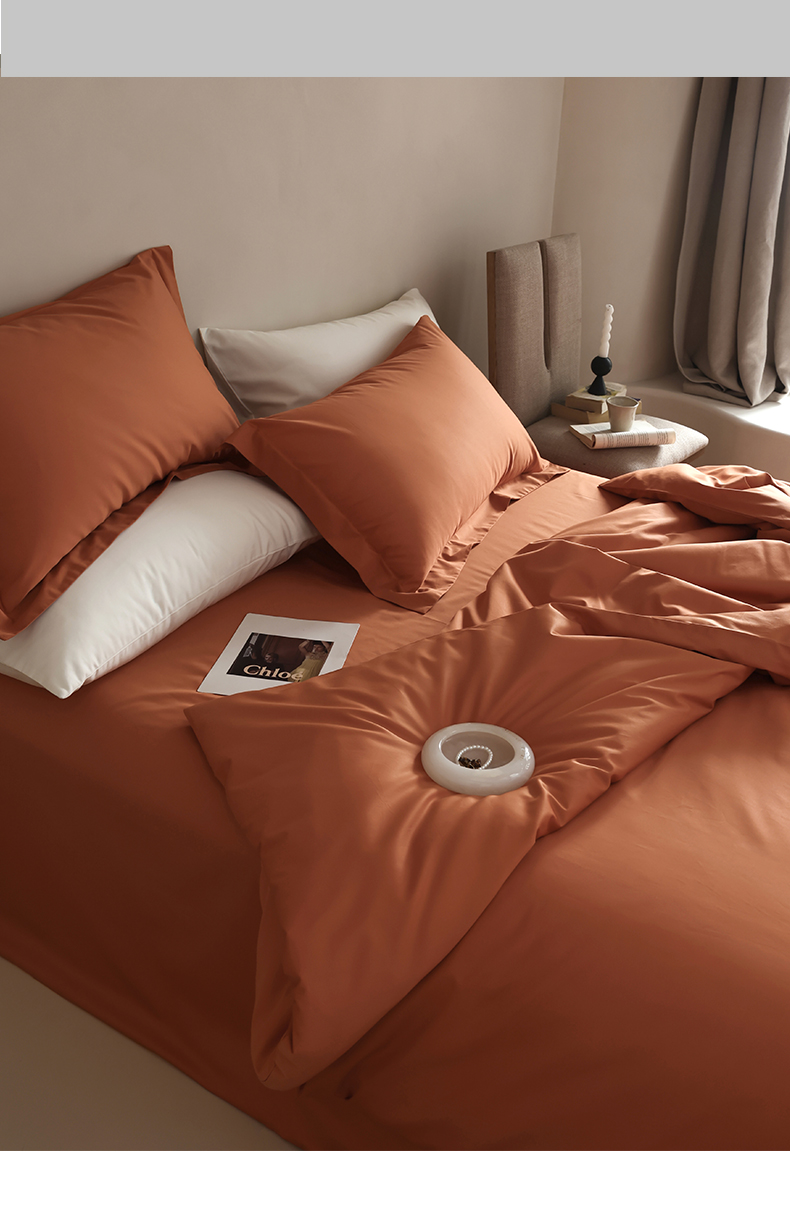 轩和 2024新款70支埃及匹马棉纯棉纯色四件套风格二 玛仕橙