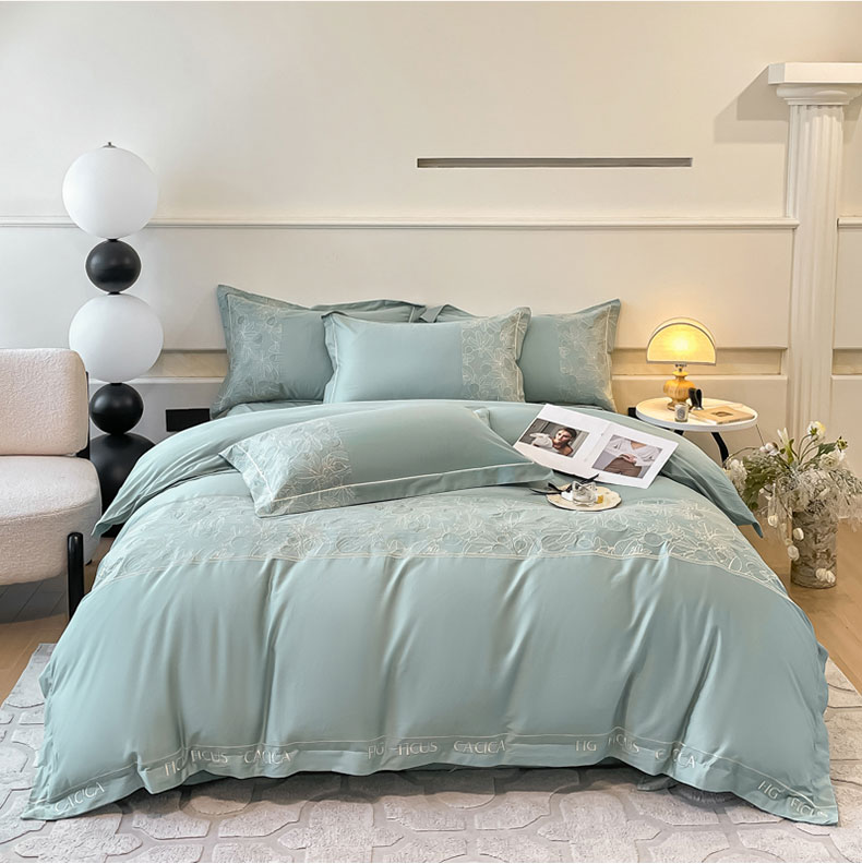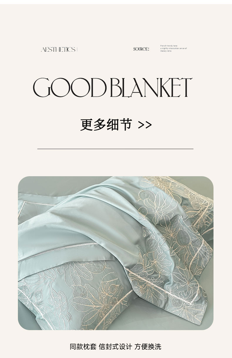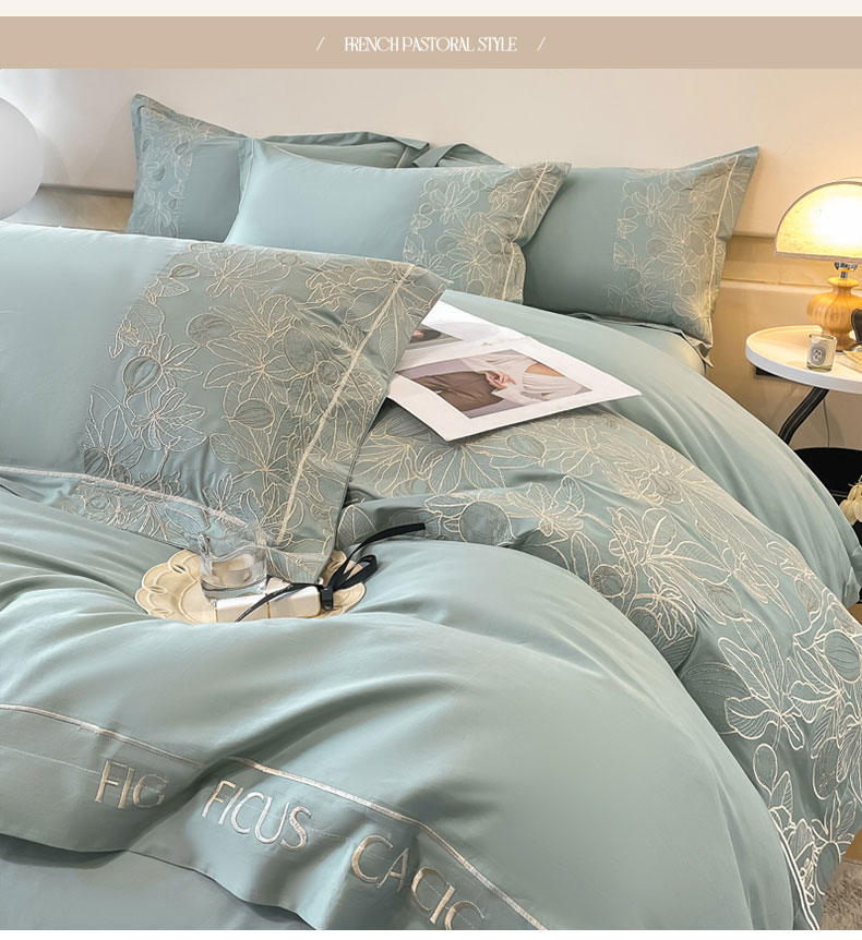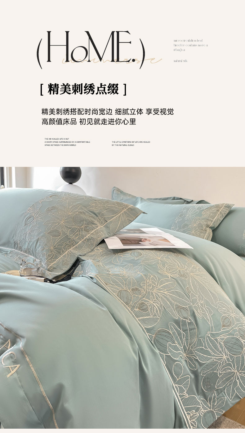 红嘴企鹅 2025新款无花果水洗真丝四件套 无花果-蓝色