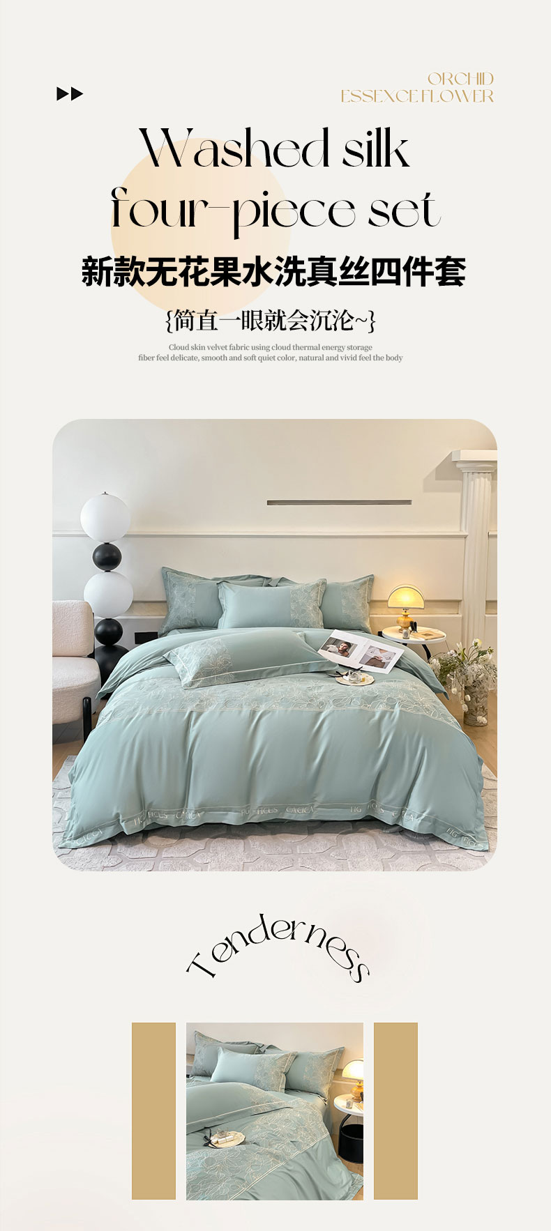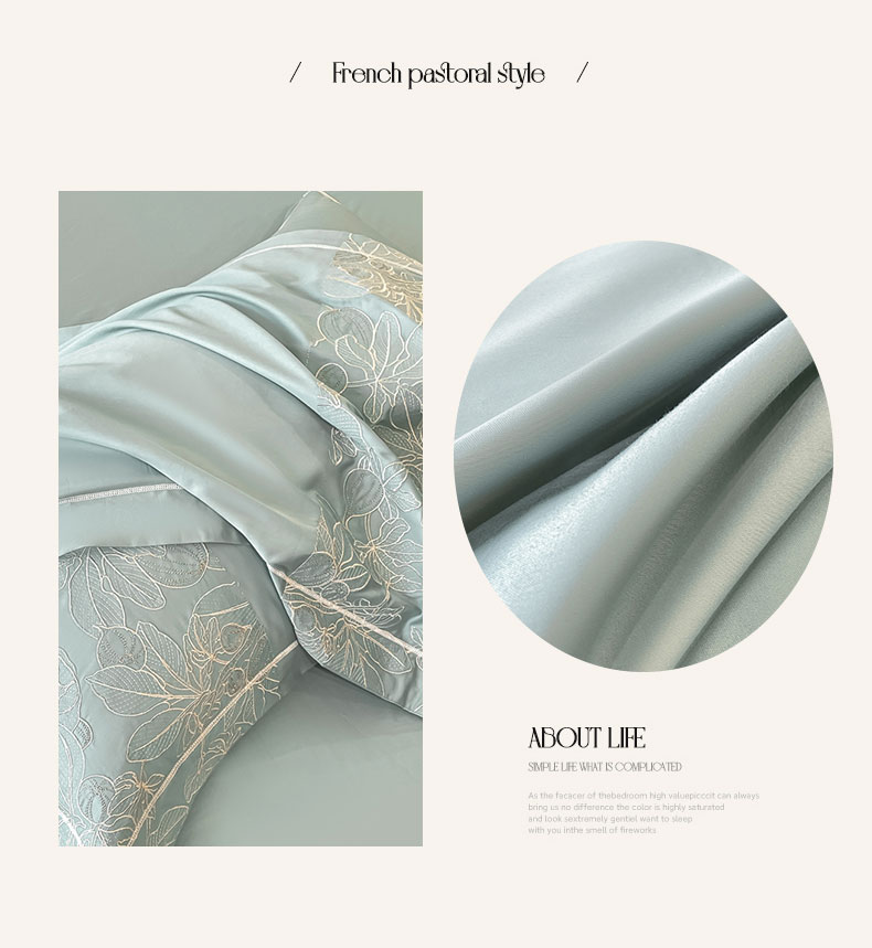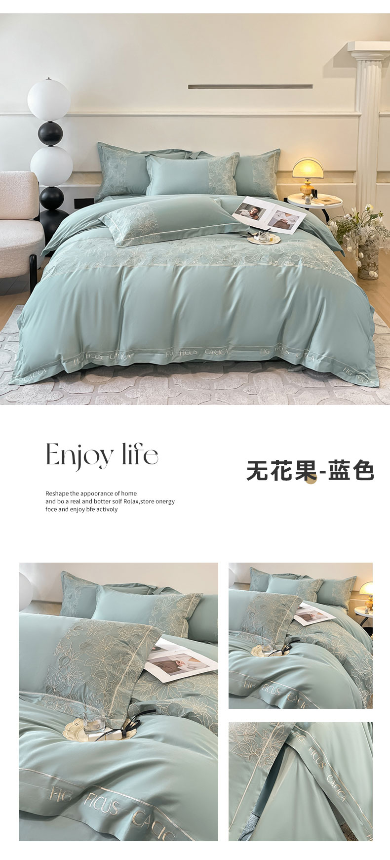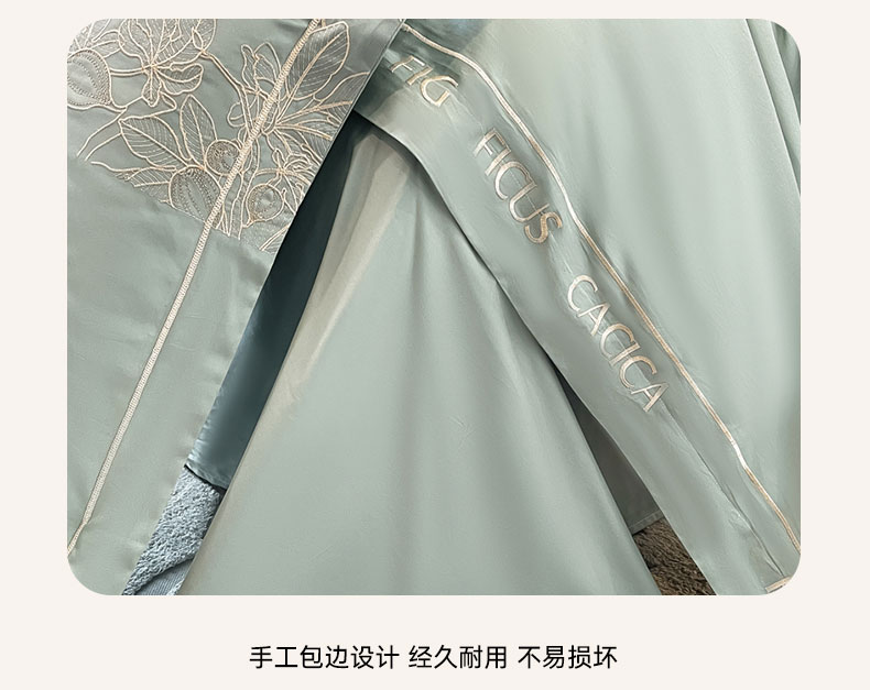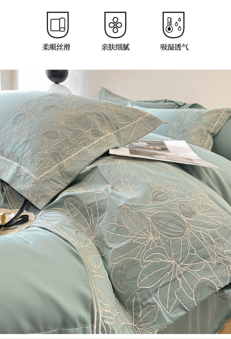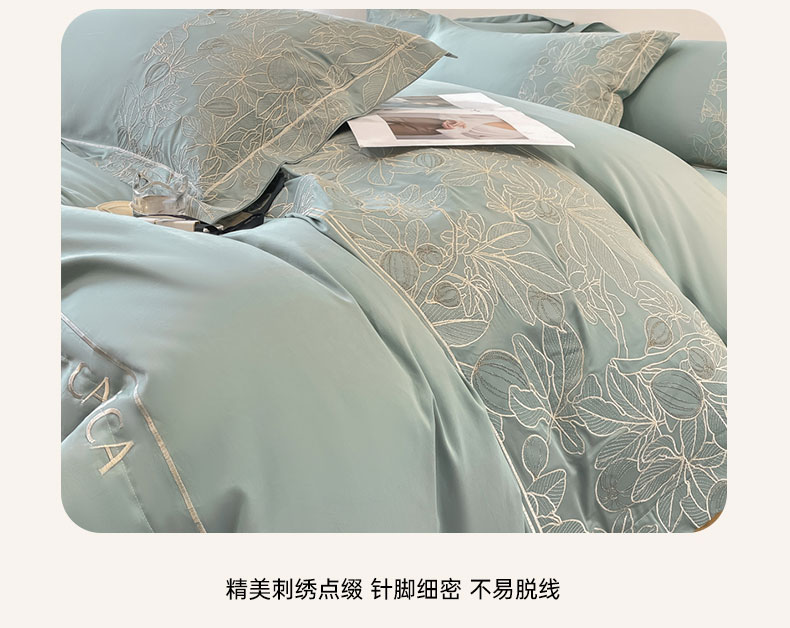 商品名称:红嘴企鹅 2025新款无花果水洗真丝四件套 无花果-蓝色