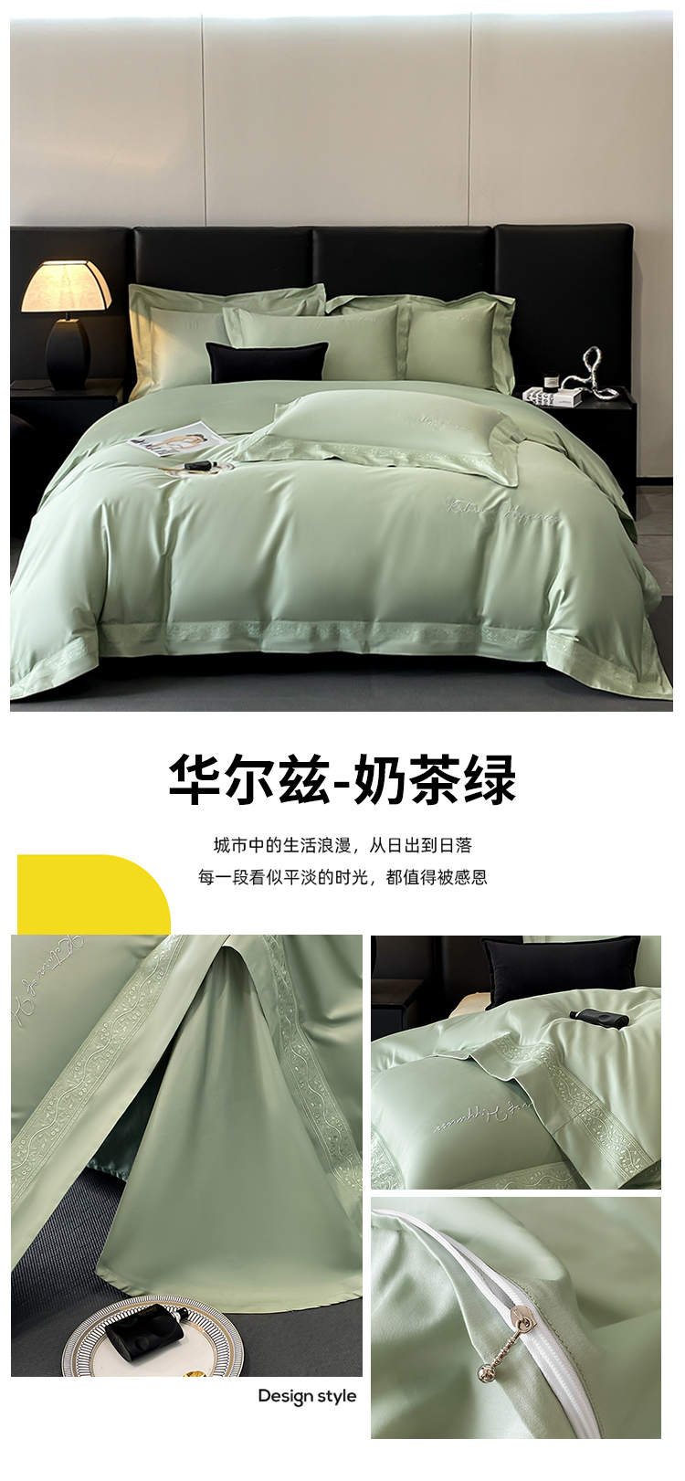 家居1号家纺 2024新款新疆长绒棉四件套-华尔兹系列 华尔兹-奶茶绿