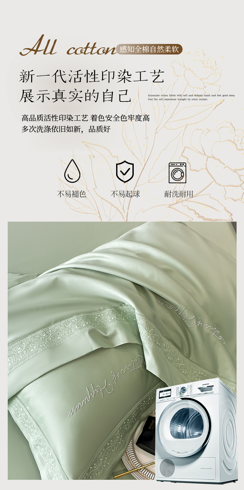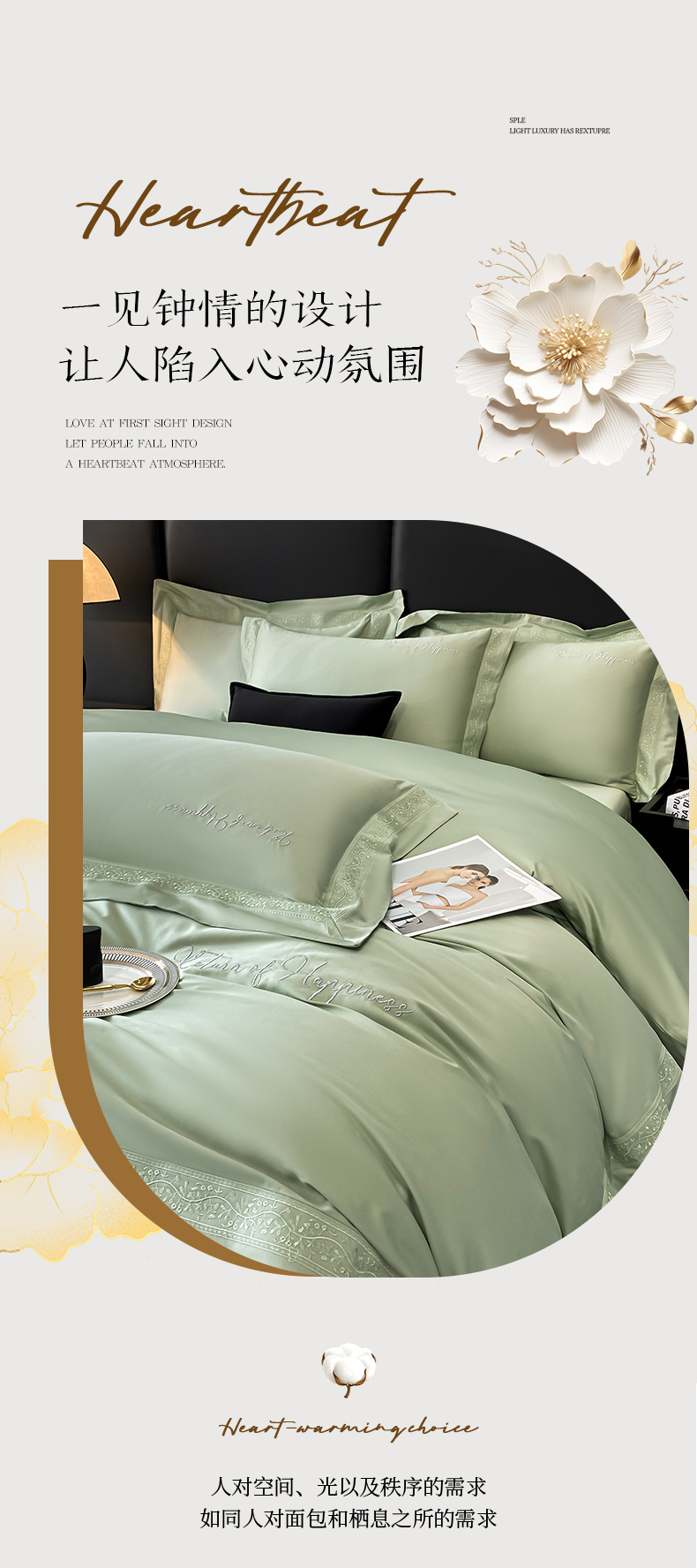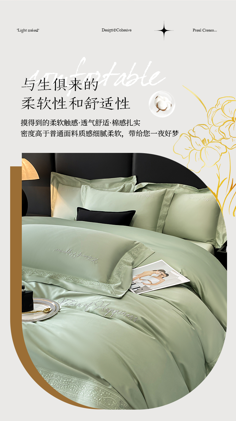 商品名称:家居1号家纺 2024新款新疆长绒棉四件套-华尔兹系列 华尔兹-奶茶绿