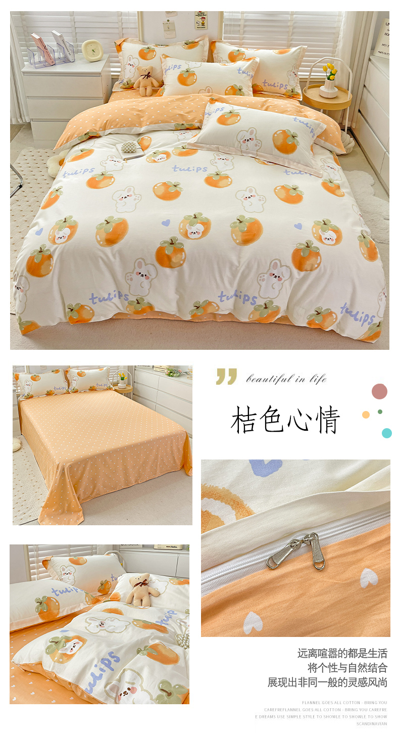 商品名称:恩泽 2024新款ins风全棉四件套 桔色心情