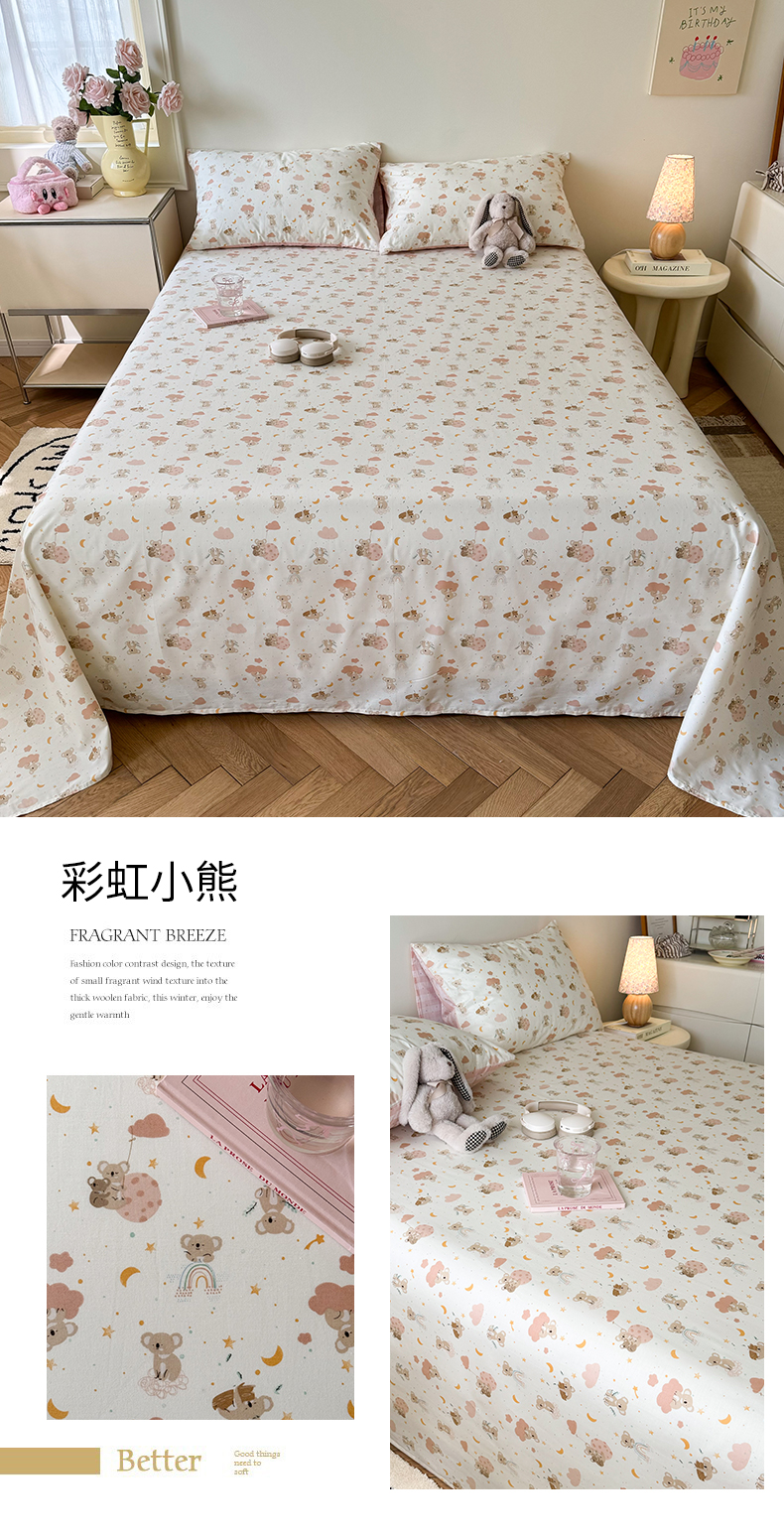 (总)名兮 2023新款全棉印花卡通风四件套,抱抱熊,波波熊,菲菲兔,机器小新,可爱萌宠,可爱兔