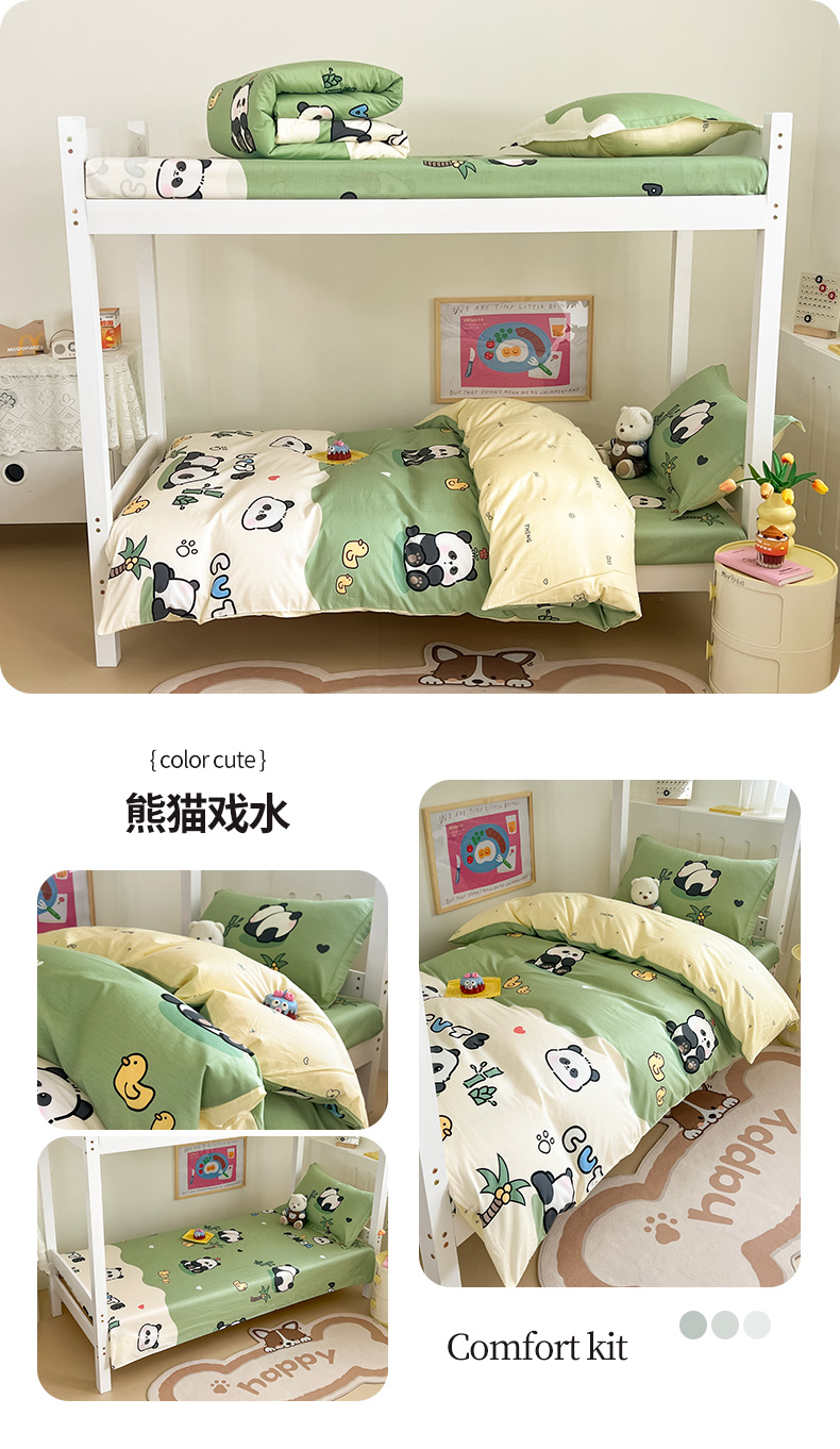 绵庭家纺 2024新款全棉印花学生季宿舍三件套 熊猫戏水
