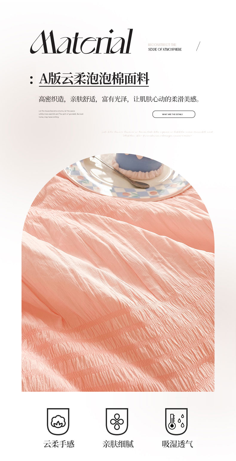 商品名称:2025新款云柔泡泡棉泡泡纱夏被四件套 盈盈妩媚