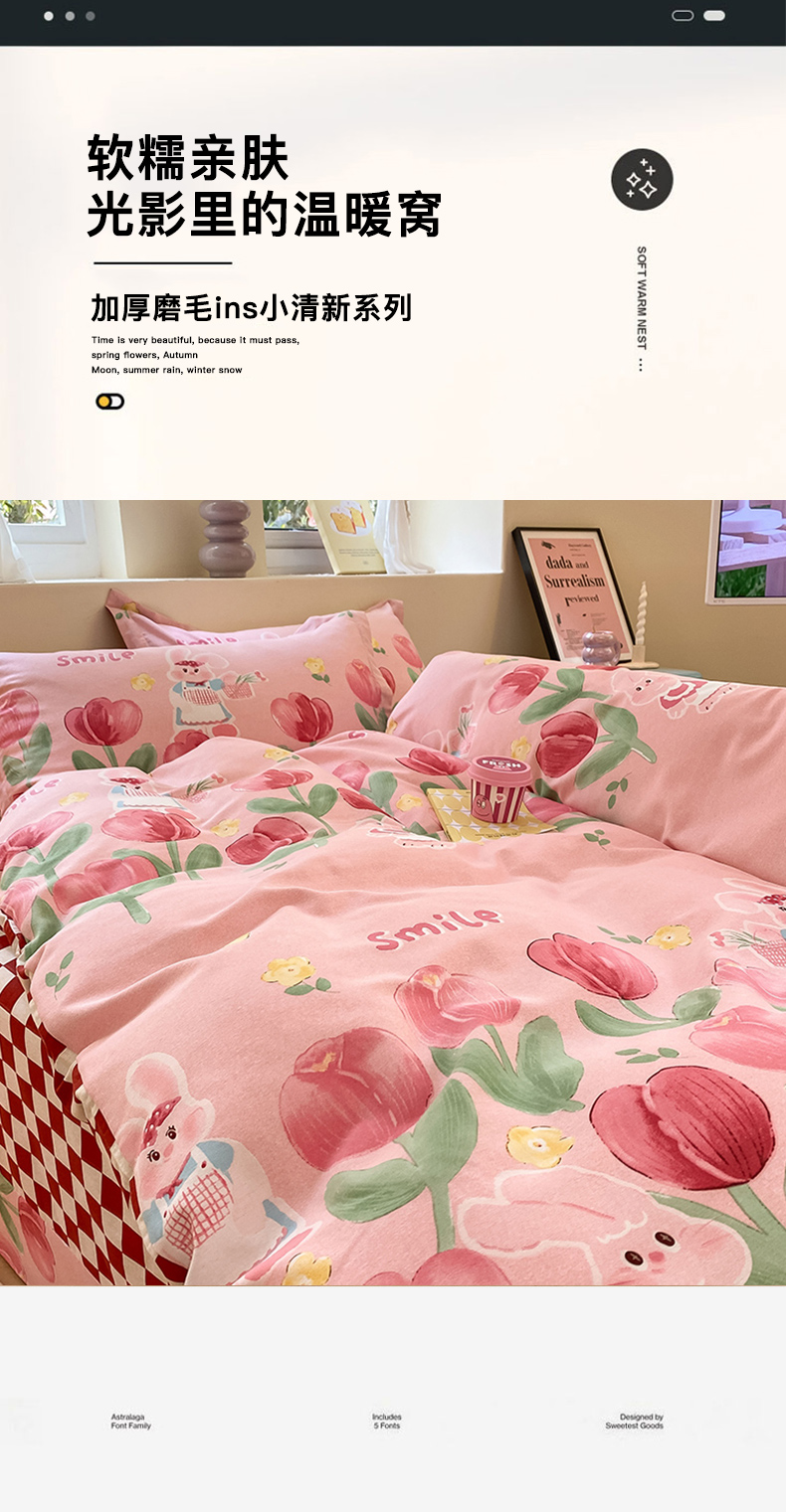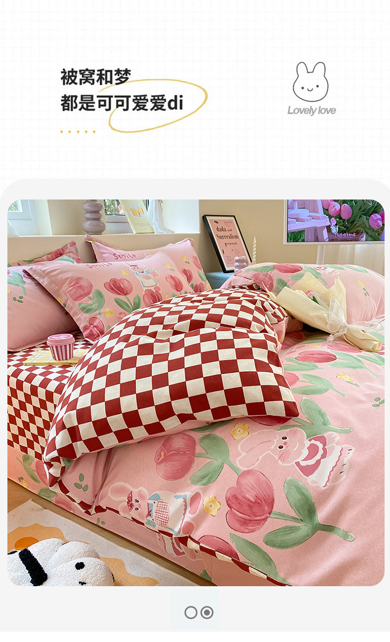 卧趣家纺 2024新款原棉磨毛四件套清新可爱系列四件套 醉花间