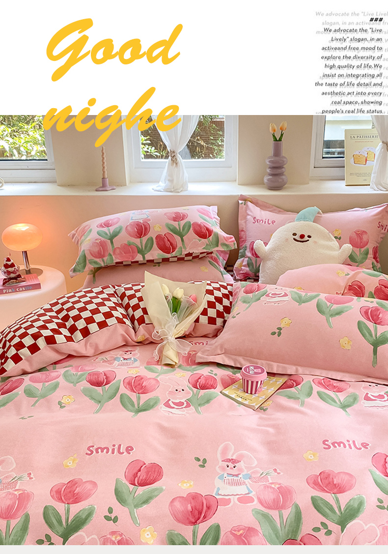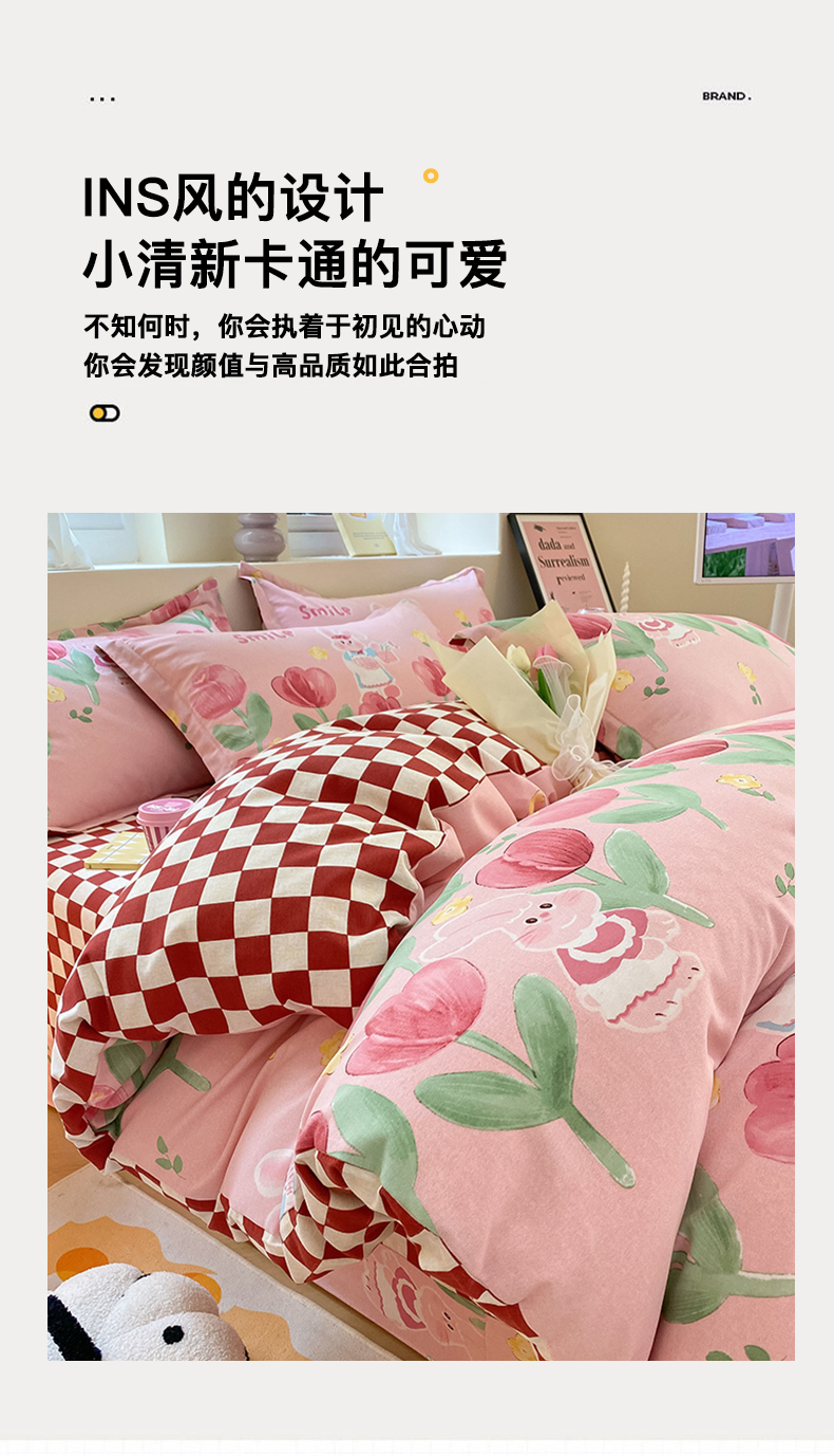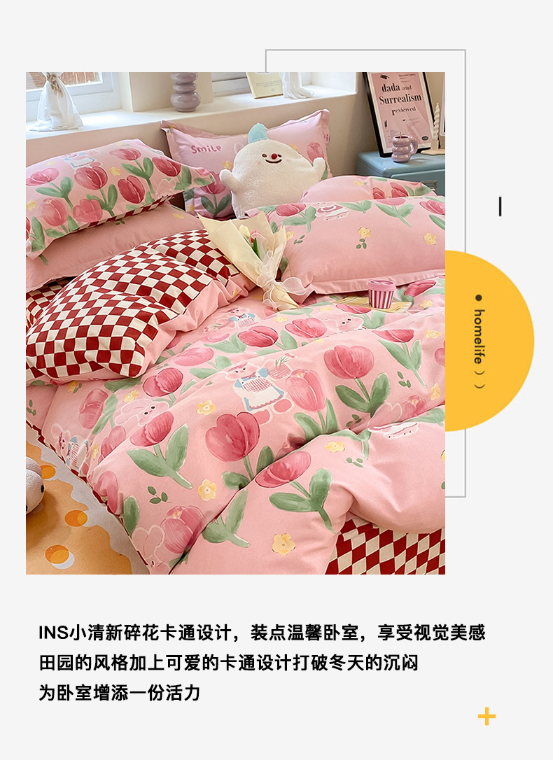 商品名称:卧趣家纺 2024新款原棉磨毛四件套清新可爱系列四件套 醉花间