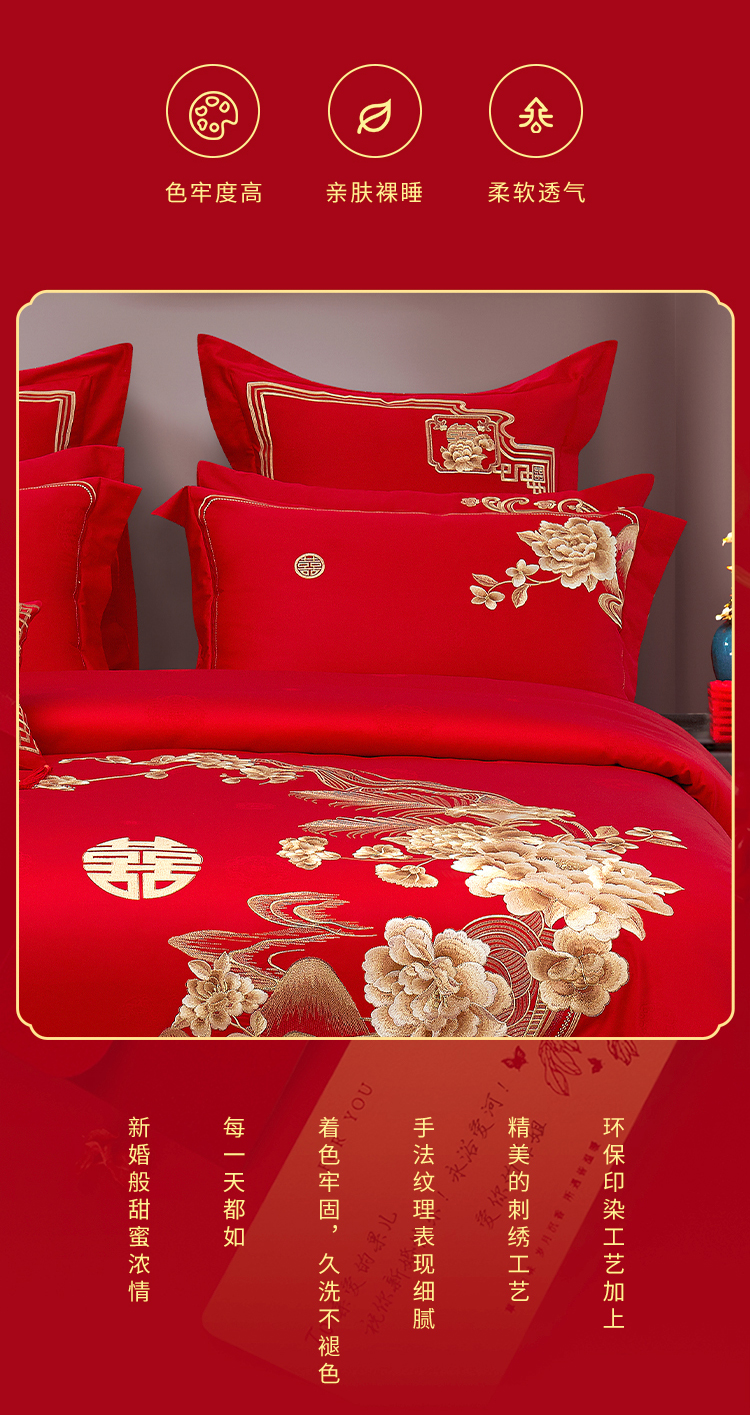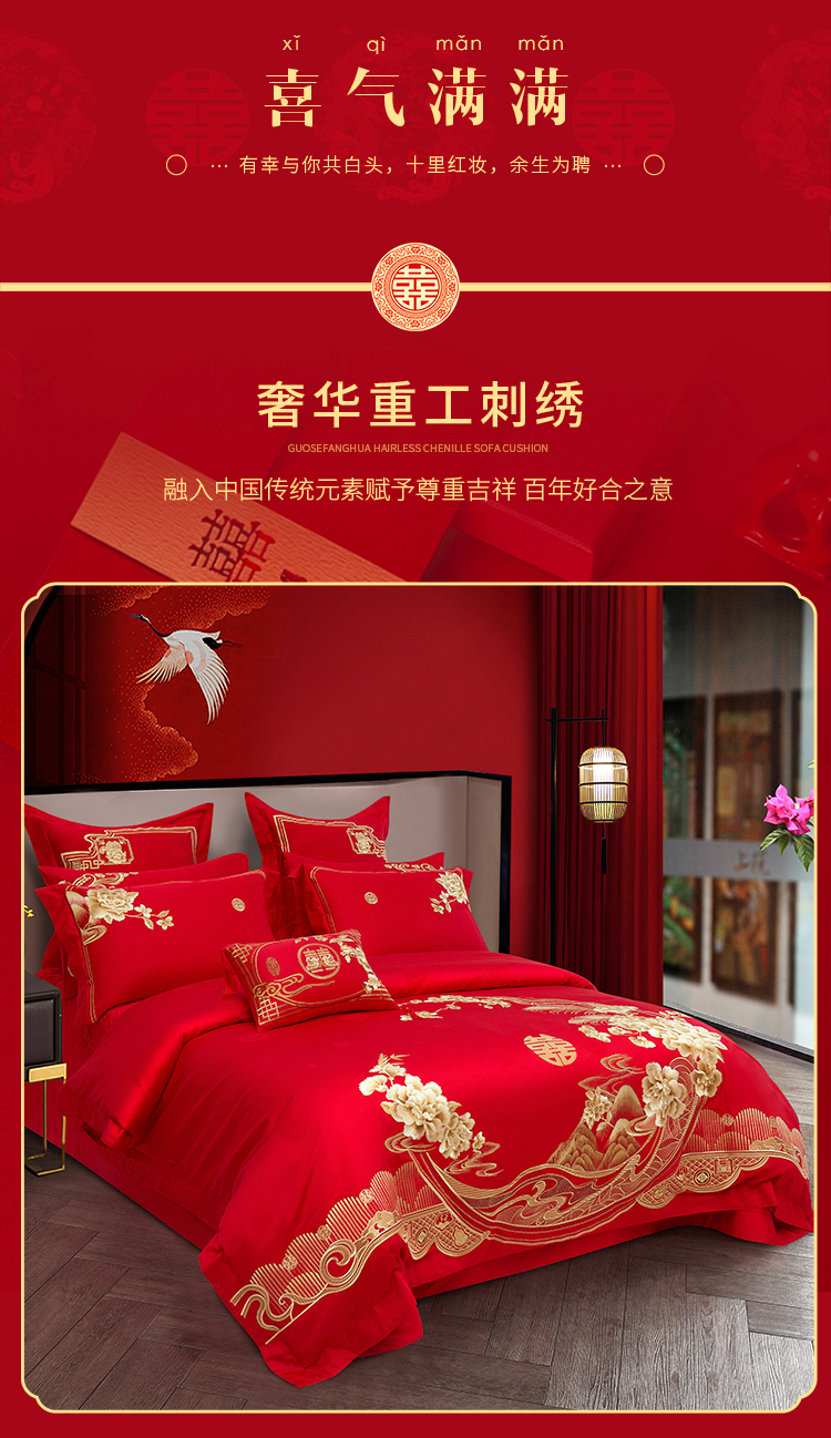 当前位置: 91家纺网 > 商品网购 > 床品套件 > 四件套 > 婚庆四件套 > 美娘阁 2025新款长绒棉贡缎提花款新中式古典韵味精美刺绣婚庆四件套多件套 花香四溢(金)