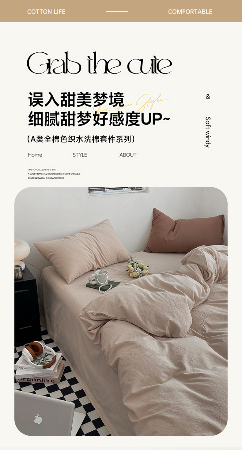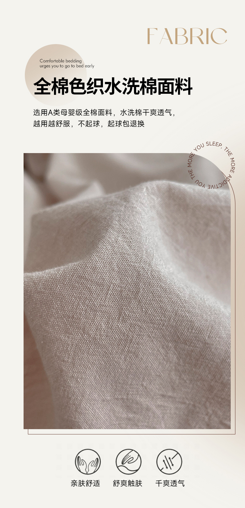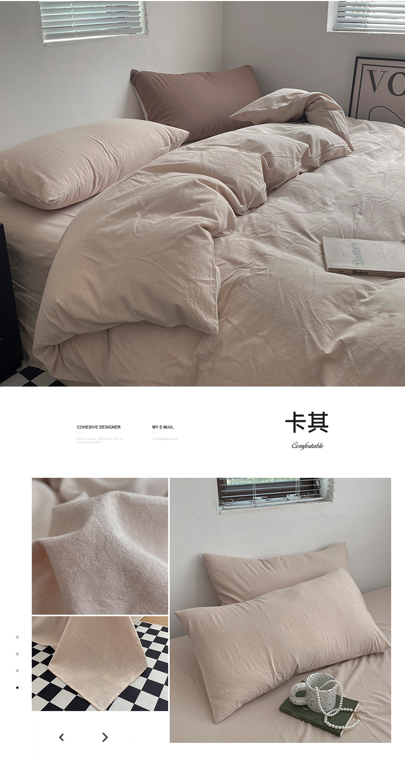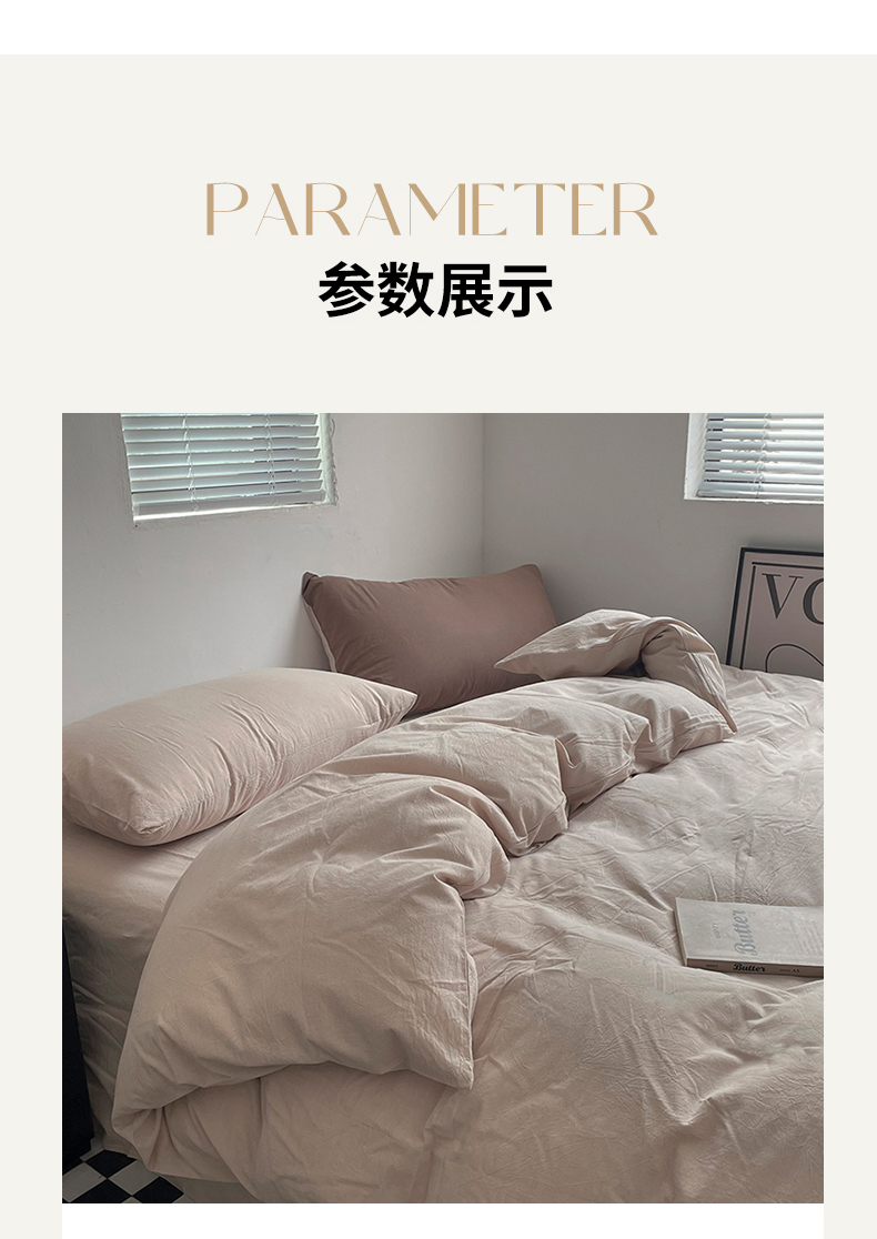 当前位置: 91家纺网 > 商品网购 > 床品套件 > 四件套 > 全棉普通四件套 > 2024新款A类全棉纯棉纯色双拼色织水洗棉四件套 卡其