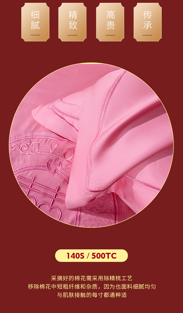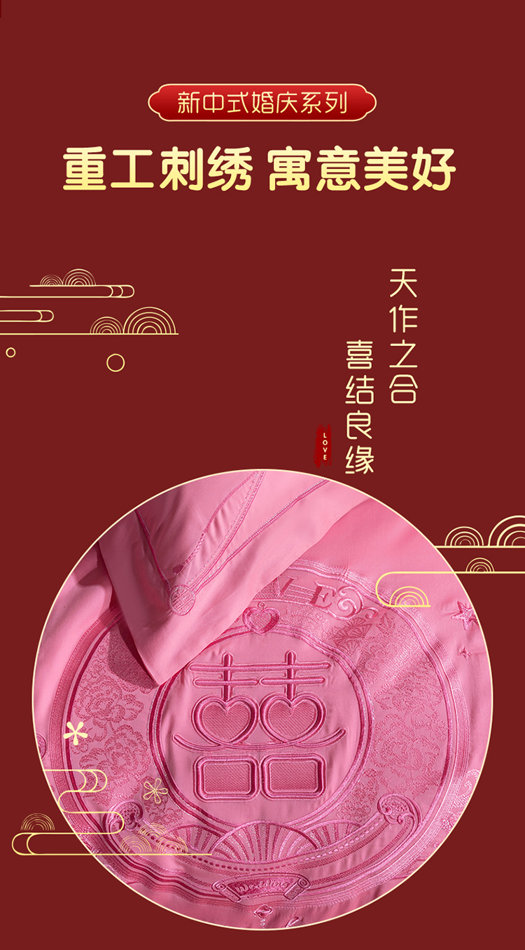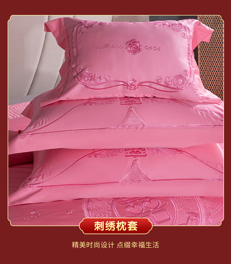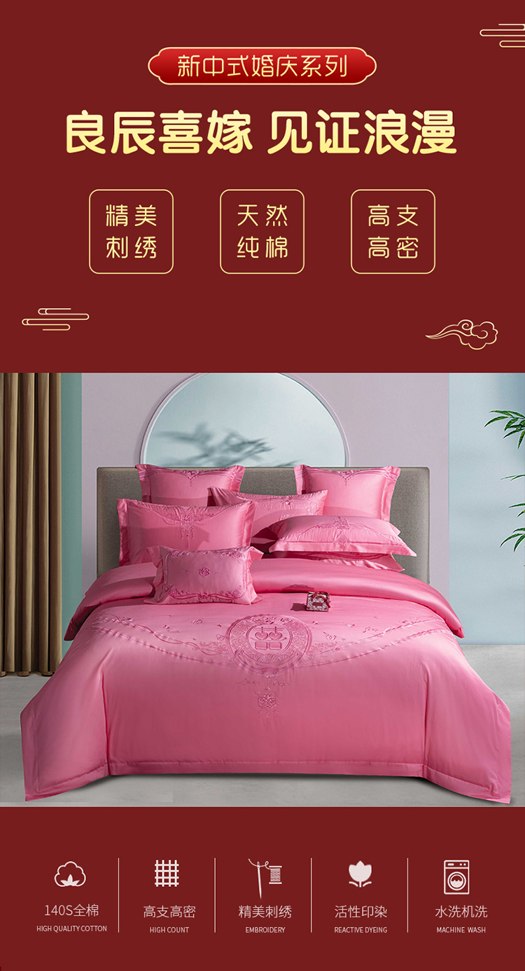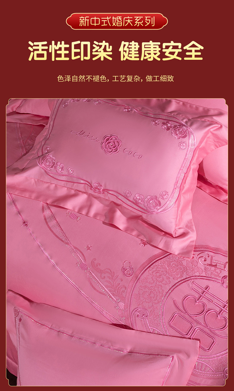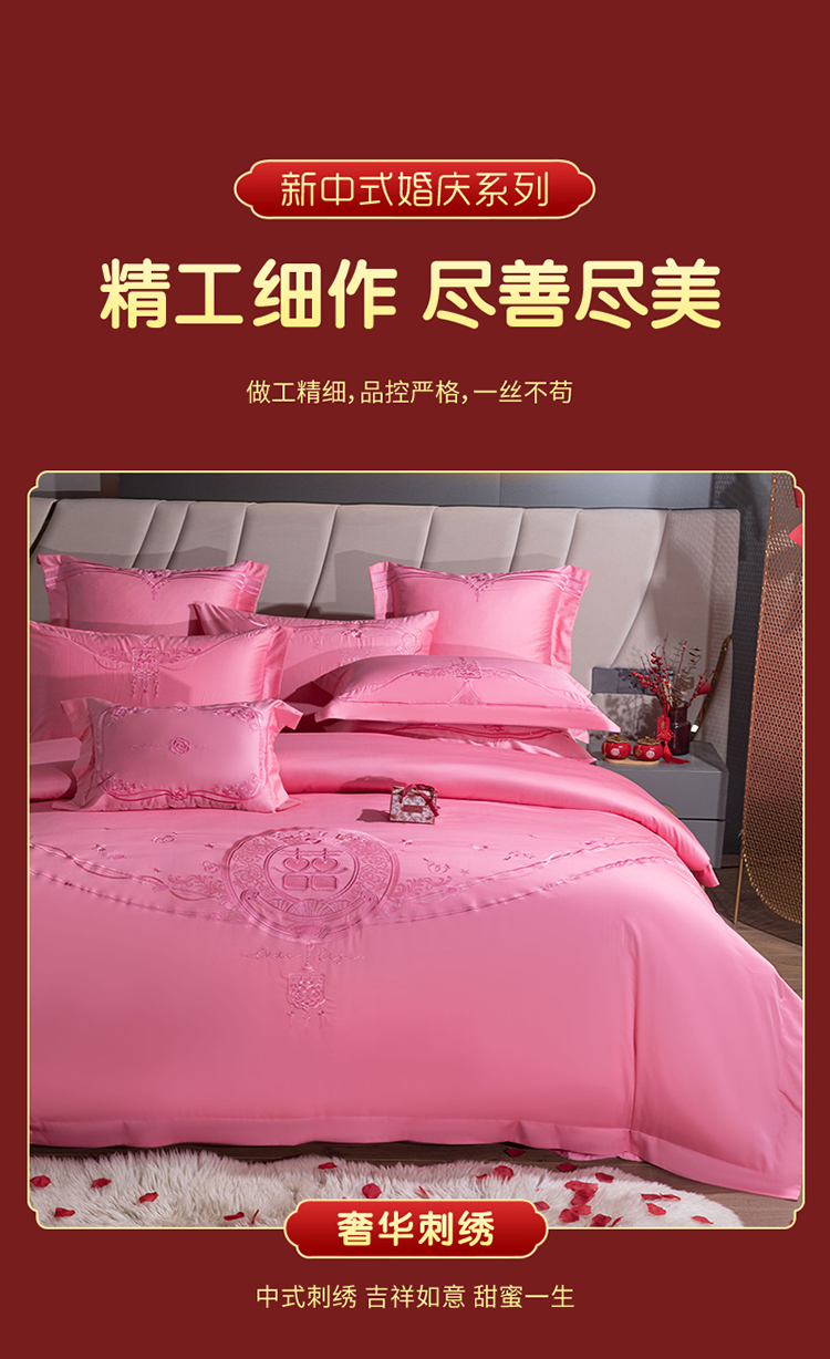 当前位置: 91家纺网 > 商品网购 > 床品套件 > 四件套 > 婚庆四件套 > 美娘阁 2025新款长绒棉贡缎新中式古典韵味精美刺绣婚庆四件套多件套系列 双喜临门(粉)