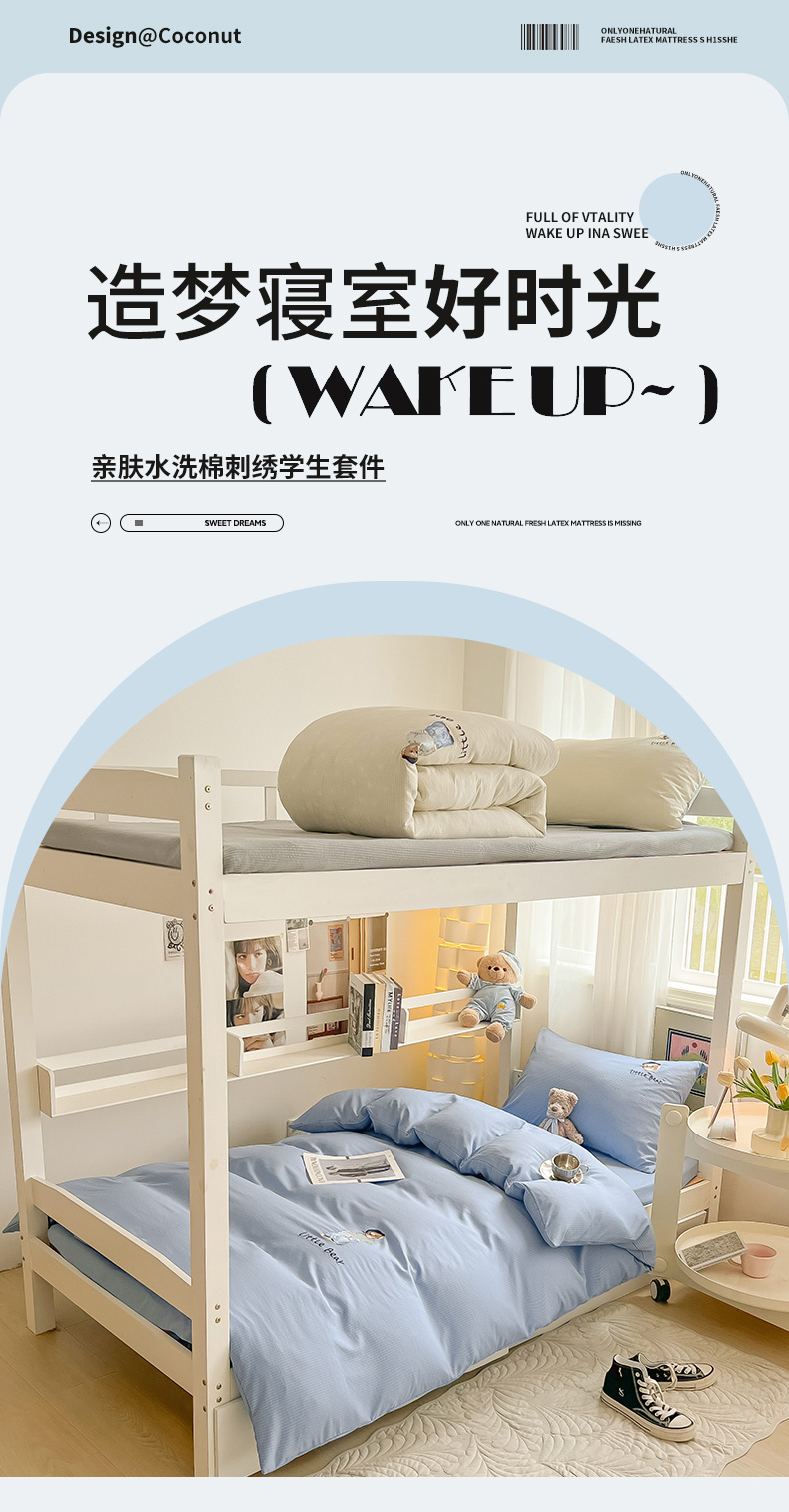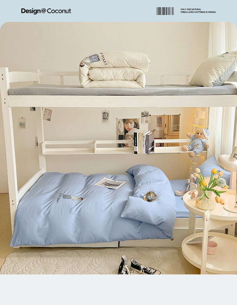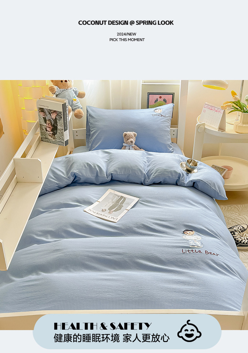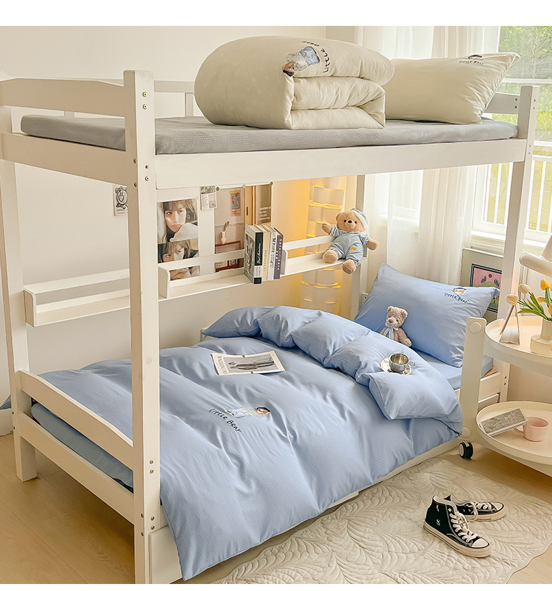 当前位置: 91家纺网 > 商品网购 > 床品套件 > 四件套 > 水洗棉四件套 > 眠帛家居 2024新款宿舍三件套水洗棉提花刺绣四件套熊先生 晴山蓝