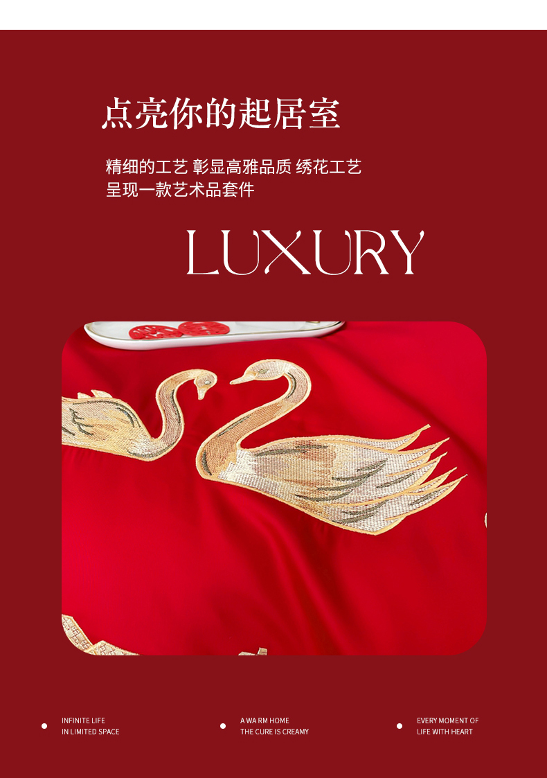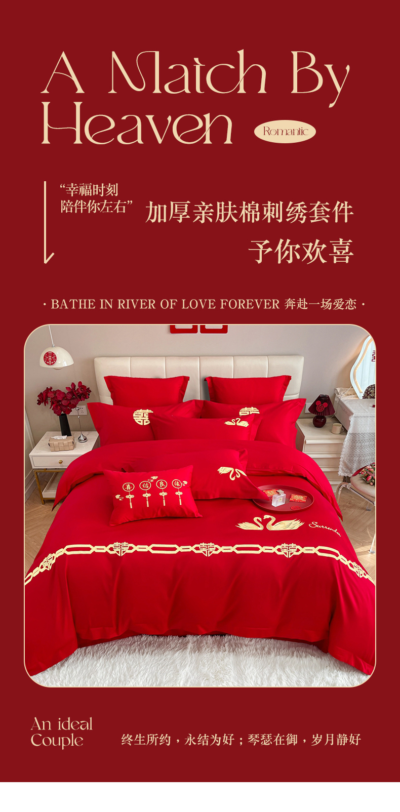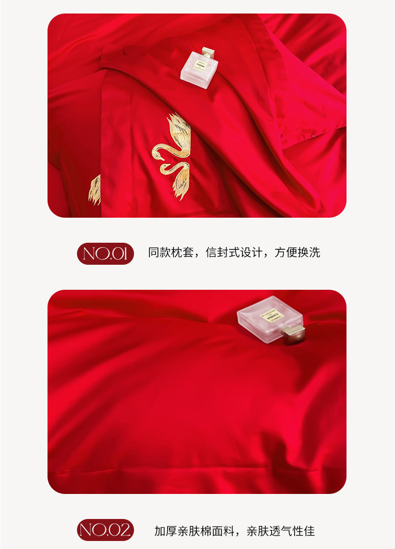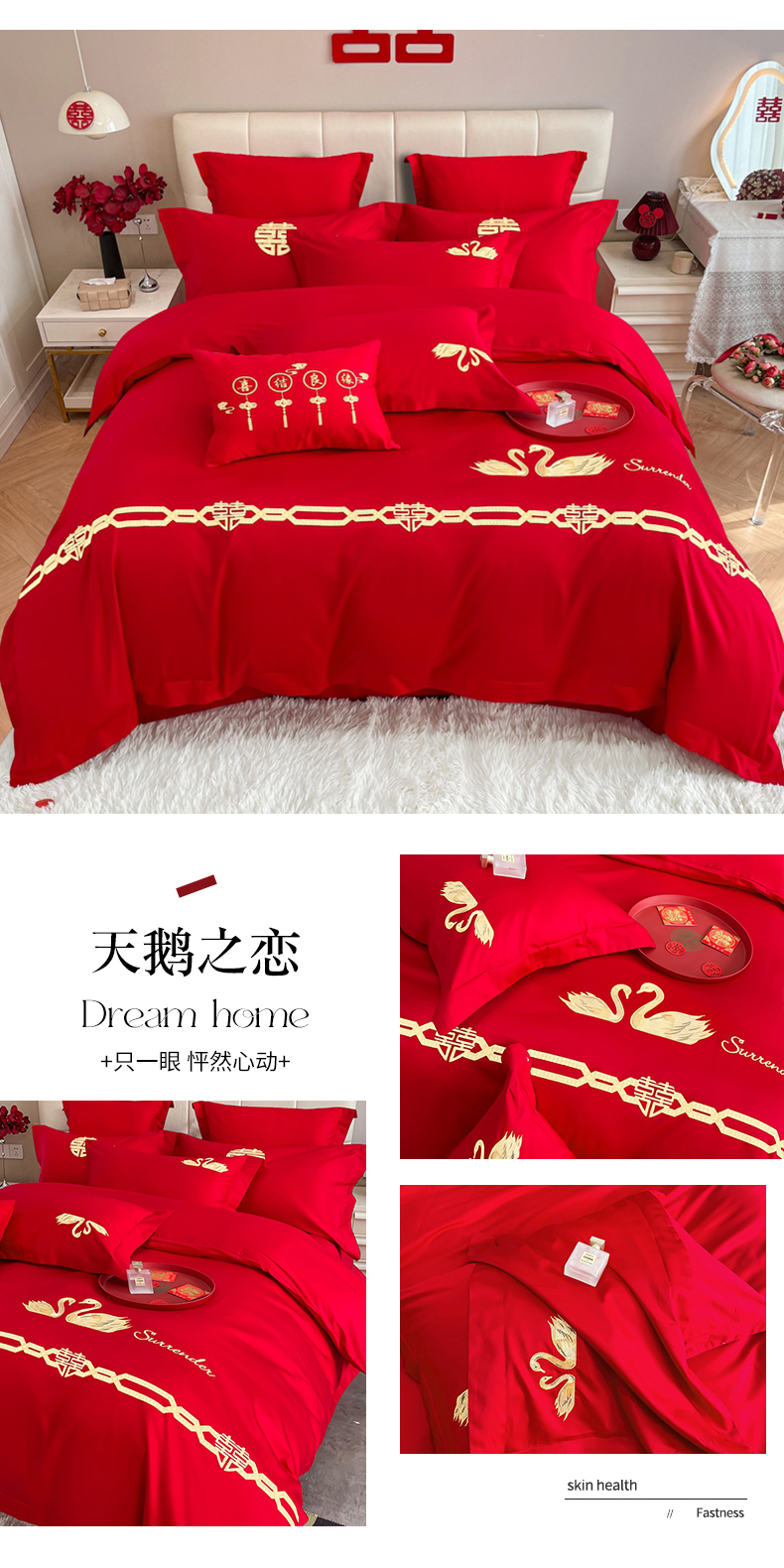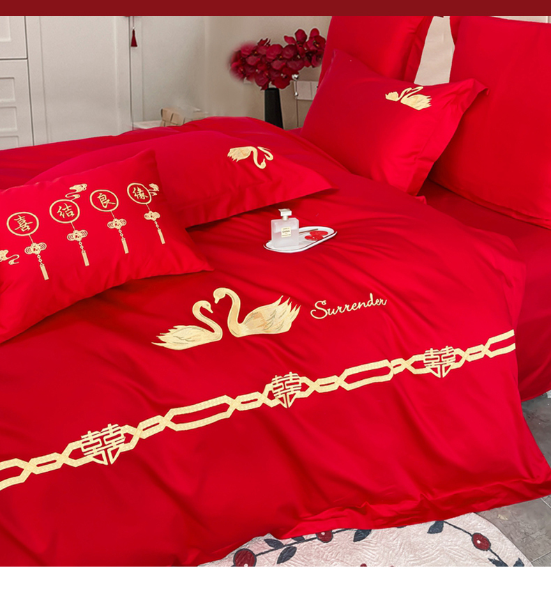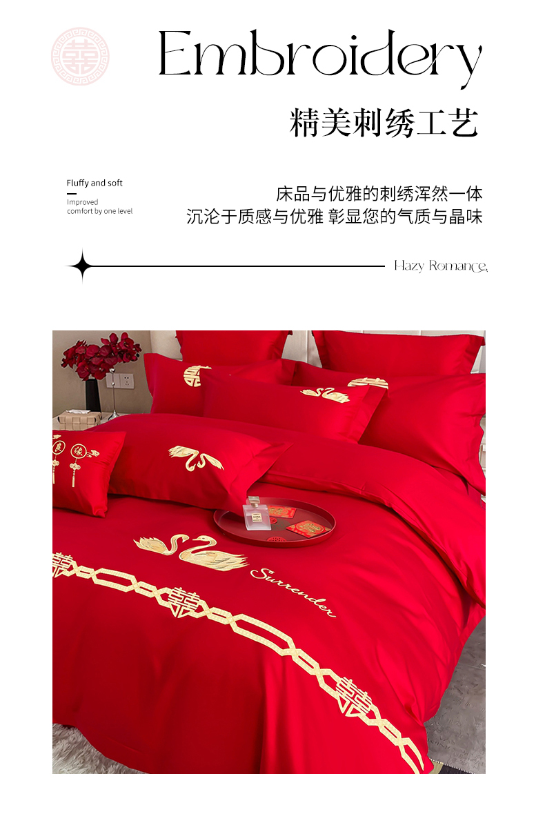 当前位置: 91家纺网 > 商品网购 > 床品套件 > 四件套 > 婚庆四件套 > 卓缦家纺 2024新款婚庆加厚亲肤棉刺绣套件 天鹅之恋