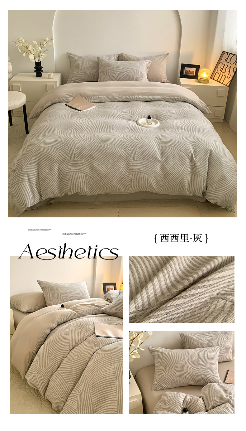 莱茵家居 2024新款全棉磨毛A类色织提花四件套 西西里-灰