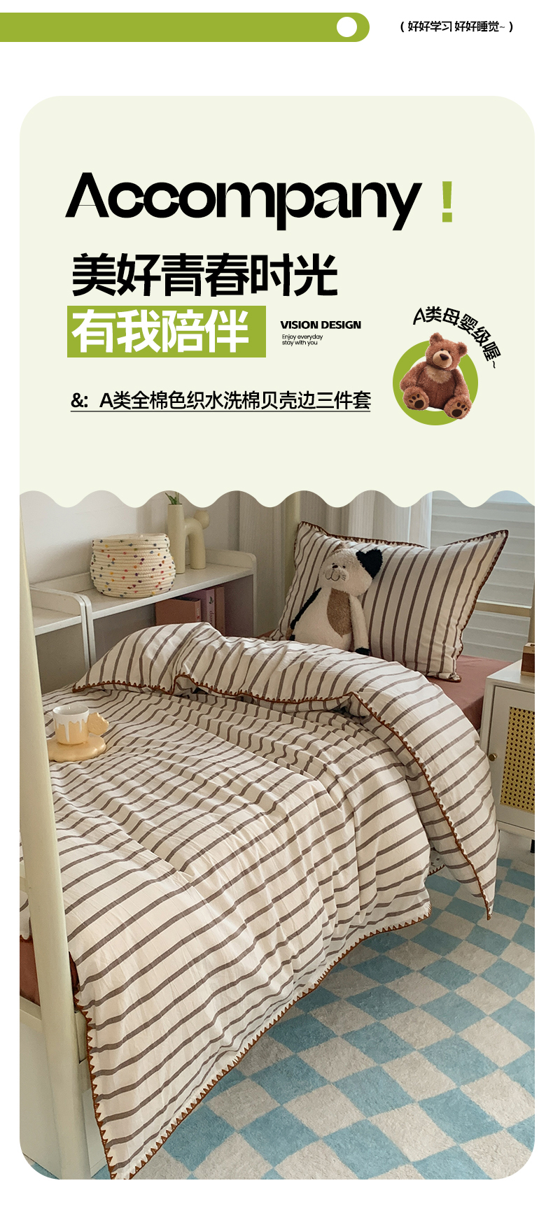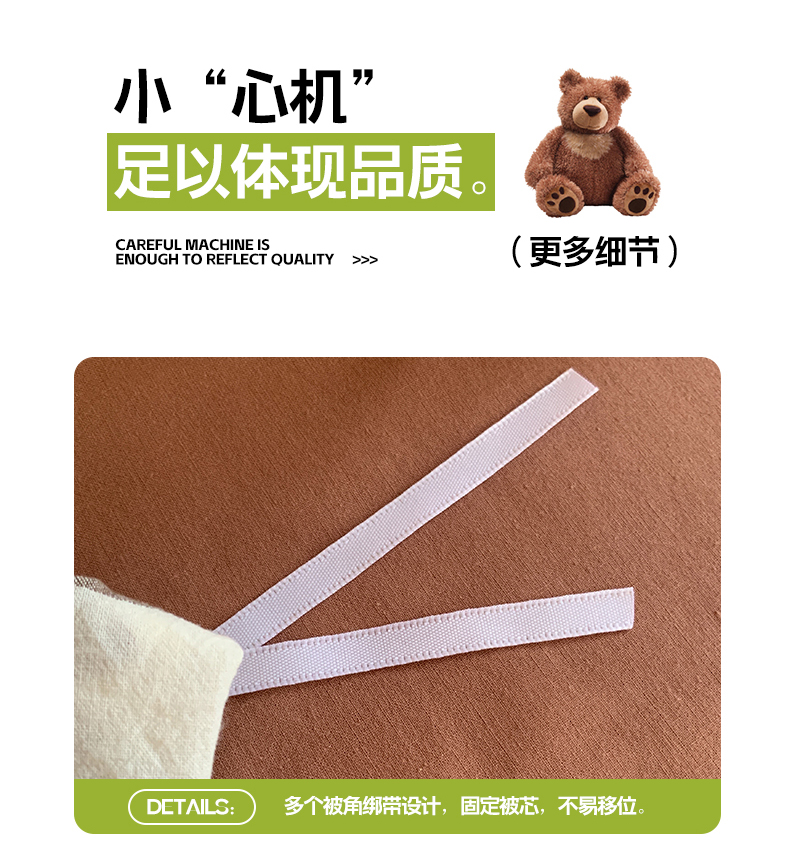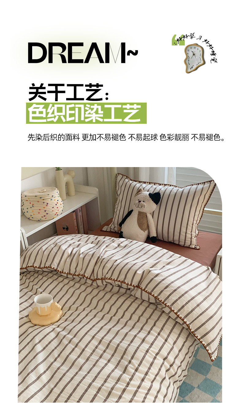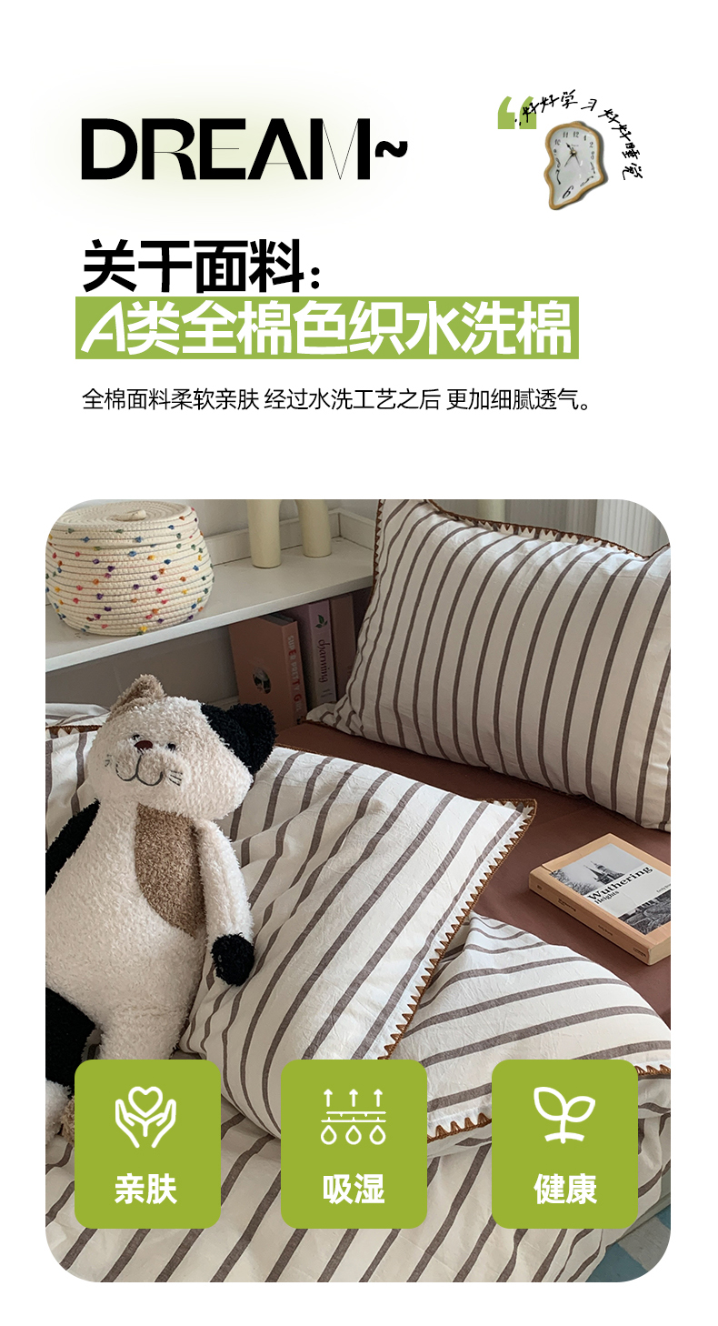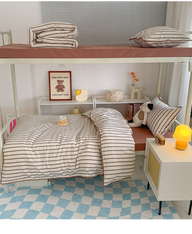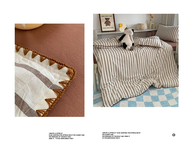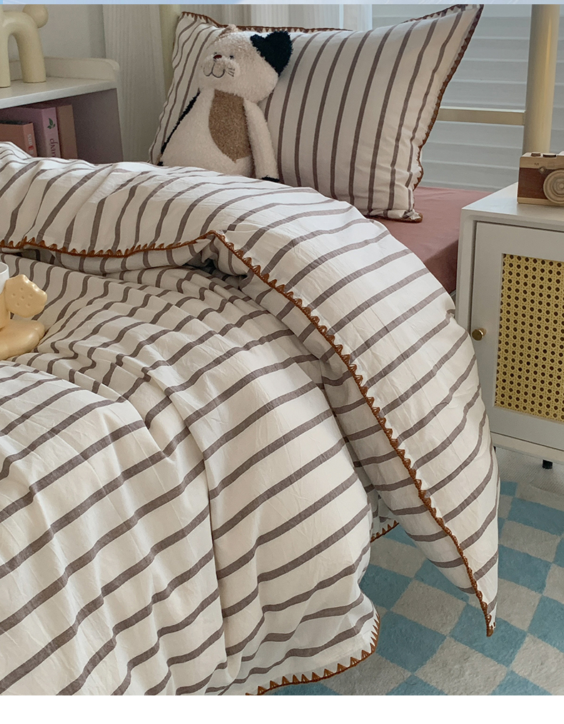 商品名称:莱茵家居 2024新款A类全棉色织水洗棉贝壳边三件套 棕苏条