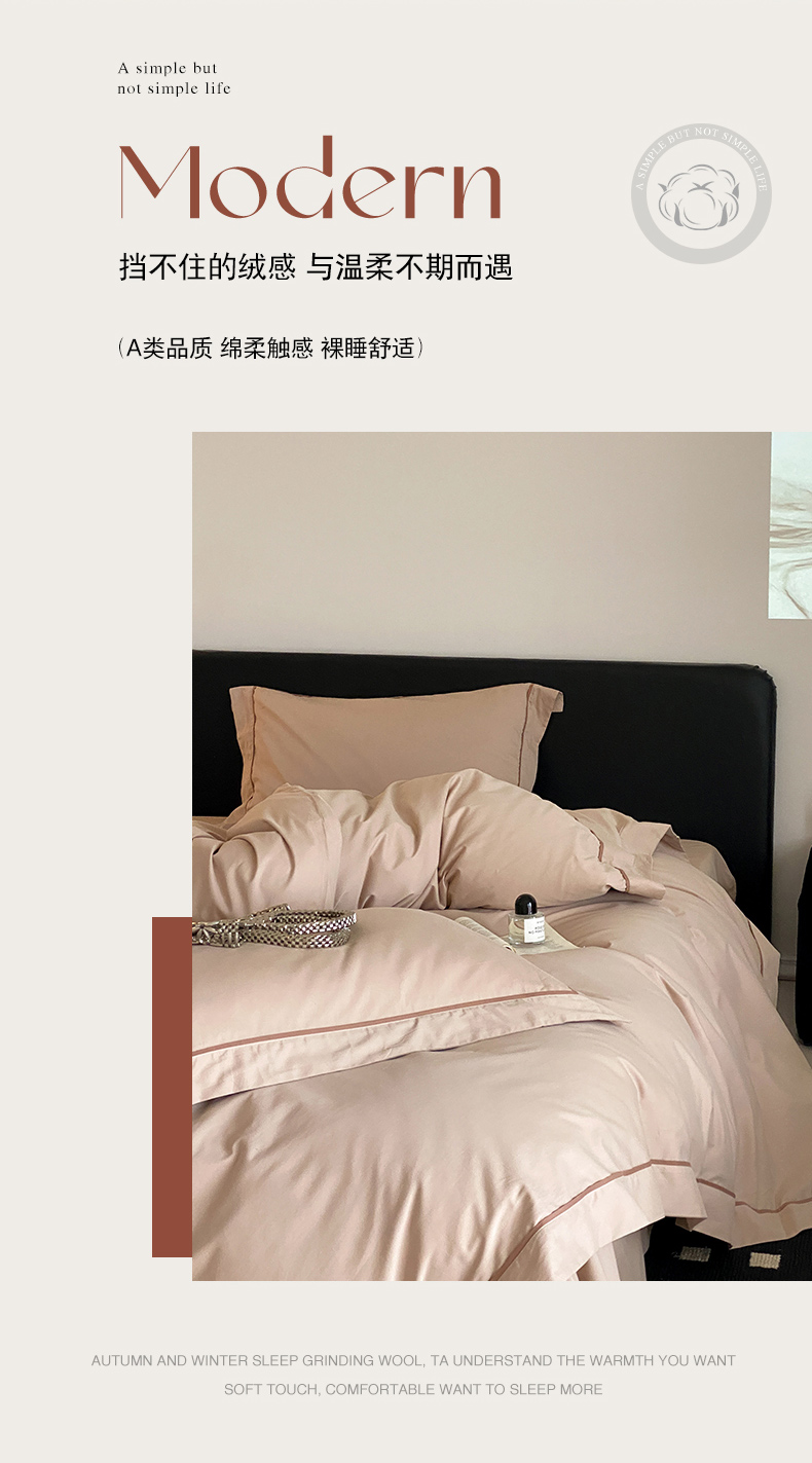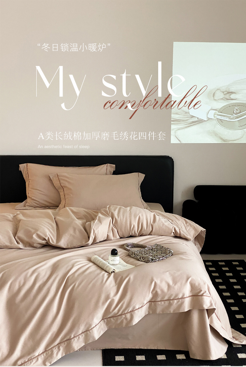 商品名称:云栖家居 2024A类全棉磨毛静谧系列四件套 静谧-亚麻色