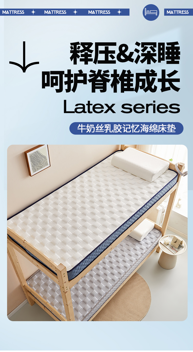 当前位置: 91家纺网 > 商品网购 > 床垫/床褥 > 普通床垫 > 卡派 2024学生宿舍单人布拉格乳胶记忆棉立体加厚床垫 白色