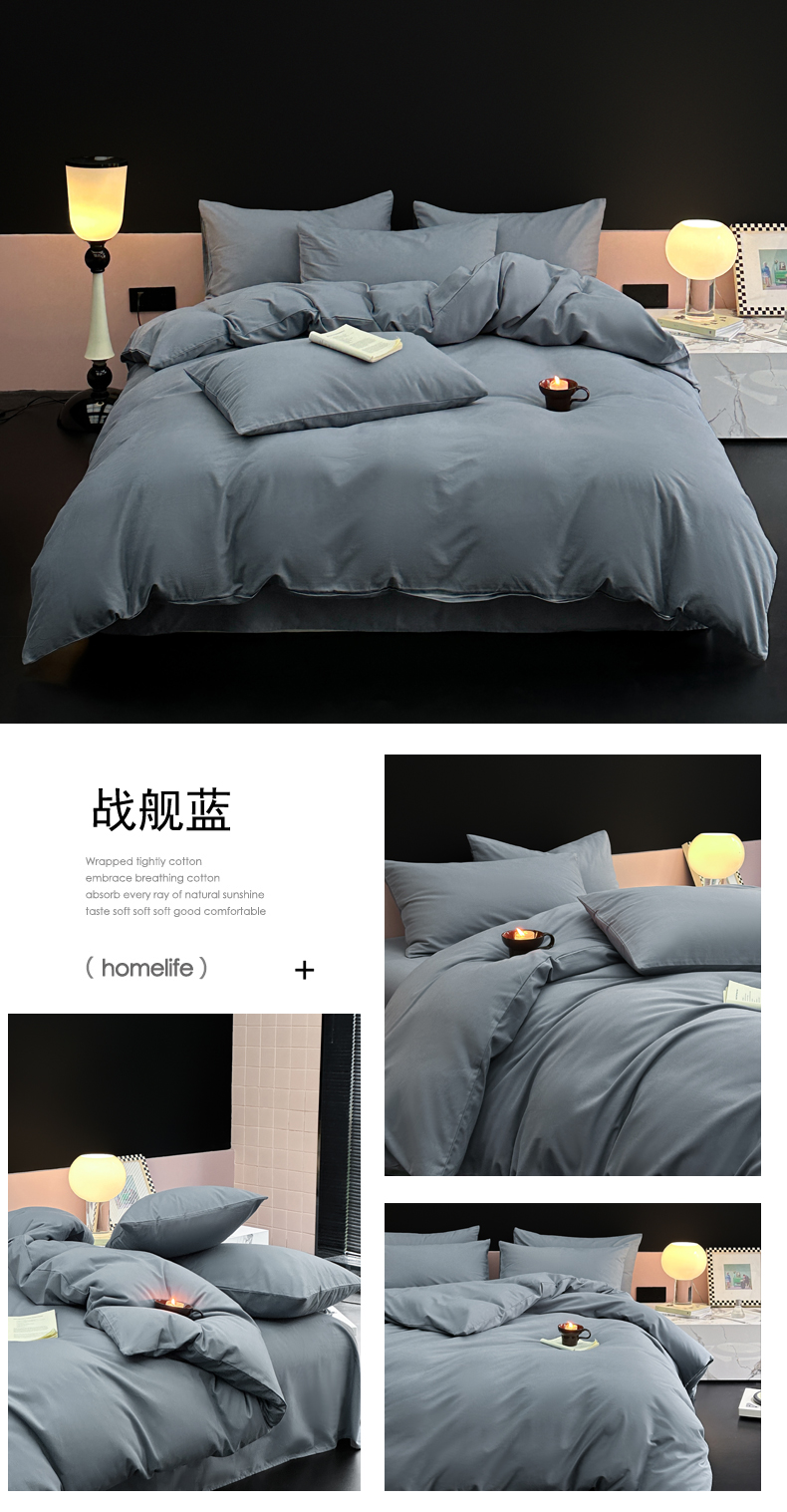 商品名称:柠馨 2024新款全棉磨毛纯色四件套-赫尔墨斯系列 8战舰蓝