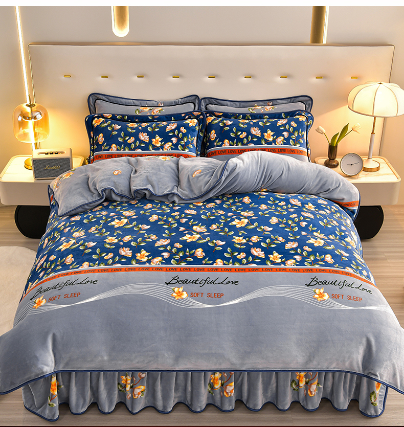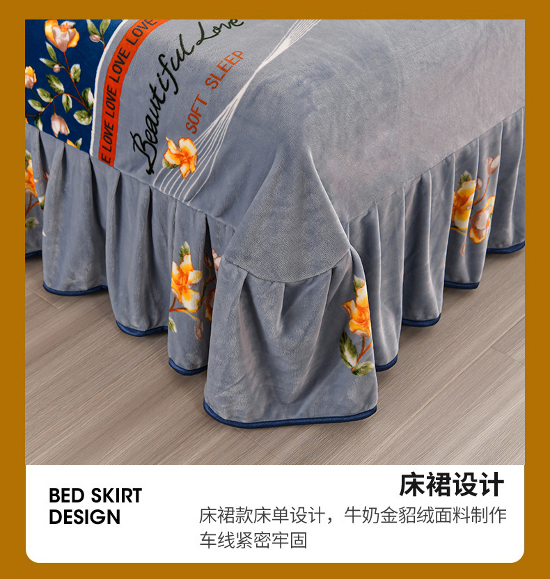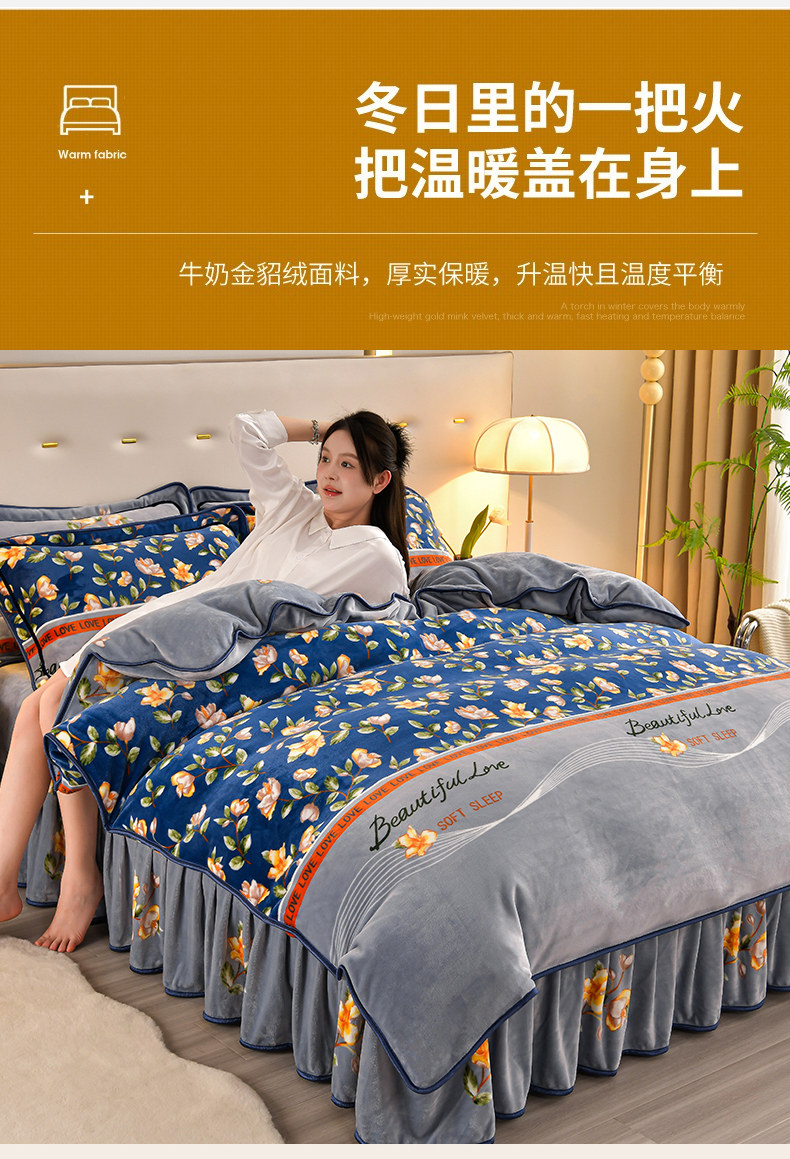 馨梦缘 2025直播爆款8.5斤牛奶绒四件套加厚保暖床裙金貂绒 静若繁花 粉,静若繁花 粉