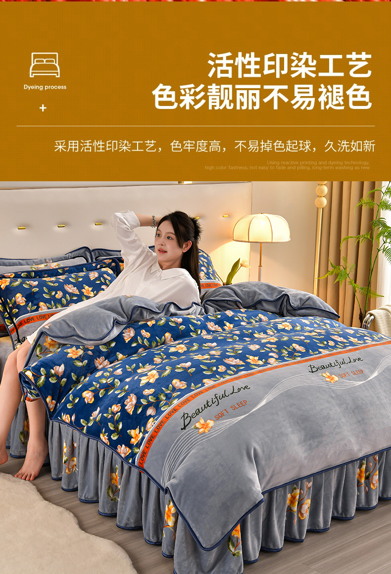 商品名称:馨梦缘 2025新款小包边款牛奶绒8.5斤高克重牛奶绒金雕绒床裙款四件套 暗香