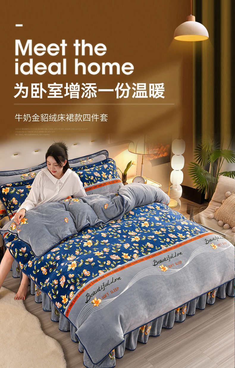 馨梦缘 2025新款小包边款牛奶绒8.5斤高克重牛奶绒金雕绒床裙款四件套 暗香