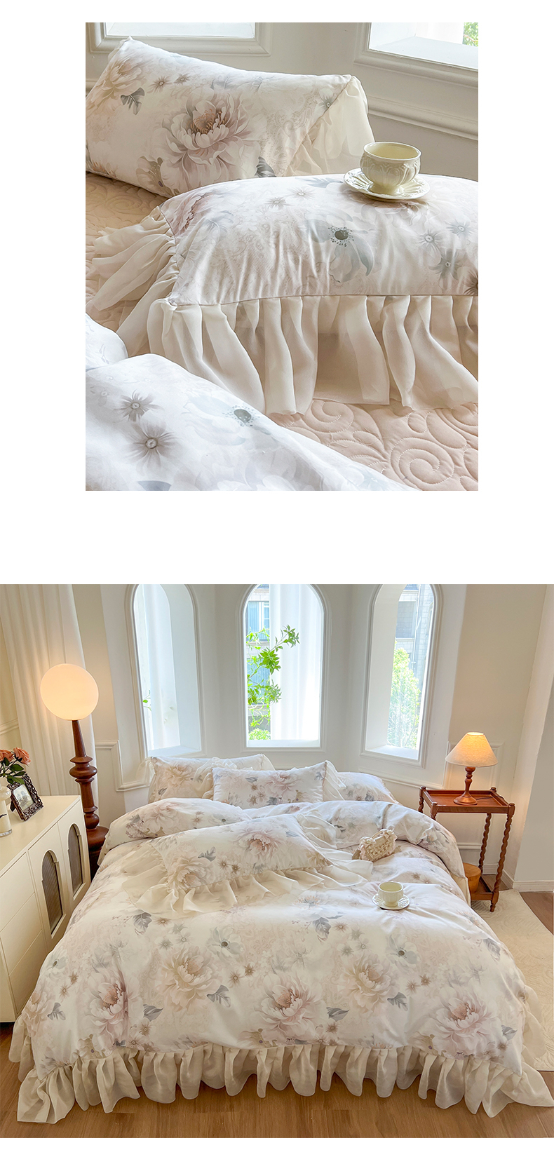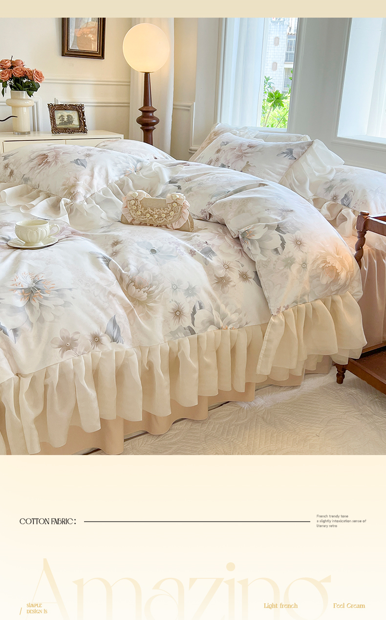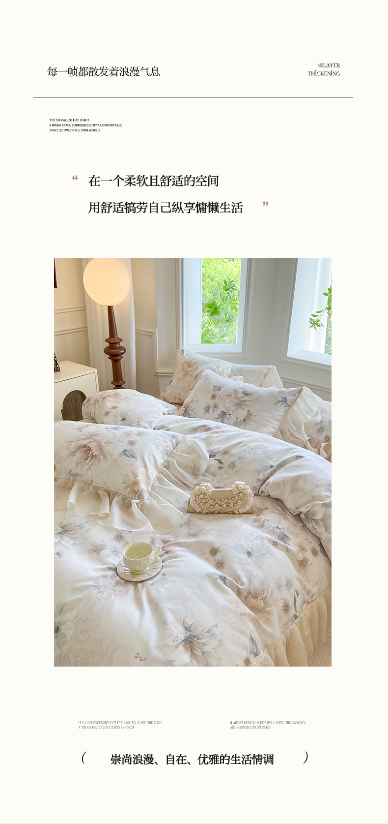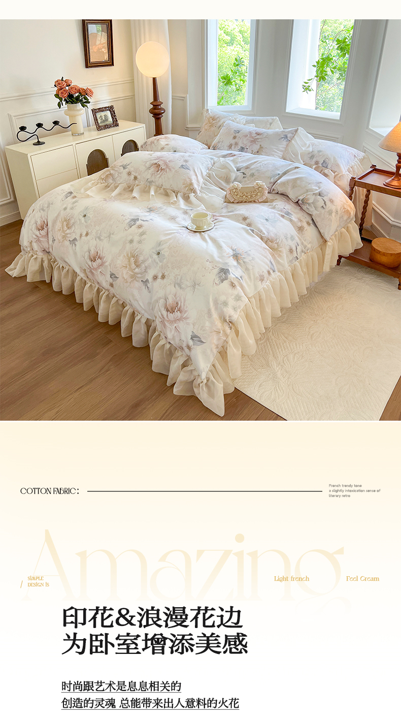 (总)网红馆(ck家纺) 2025新款全棉磨毛印花床裙款复古法式优雅四件套,花舞漫天-粉,玫瑰趣事-粉,玫瑰趣事-灰,梦语-桔