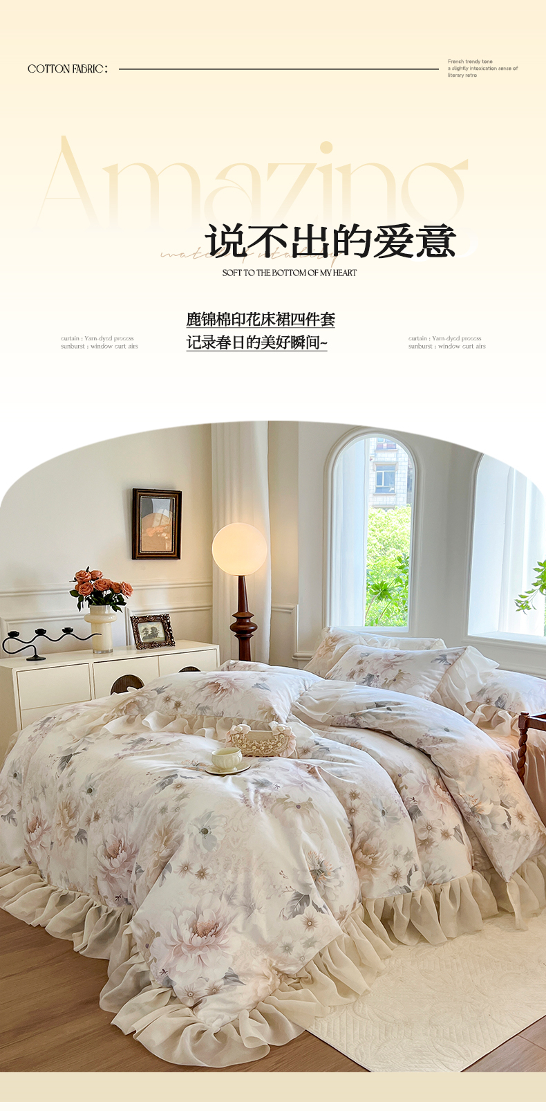 网红馆(ck家纺)2025新款鹿锦棉印花床裙四件套 悠若花园-咖