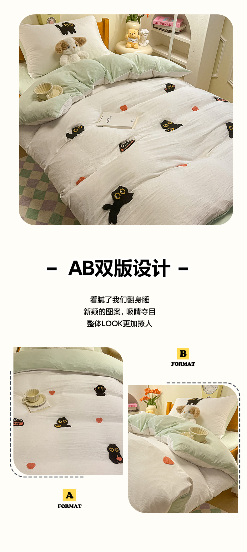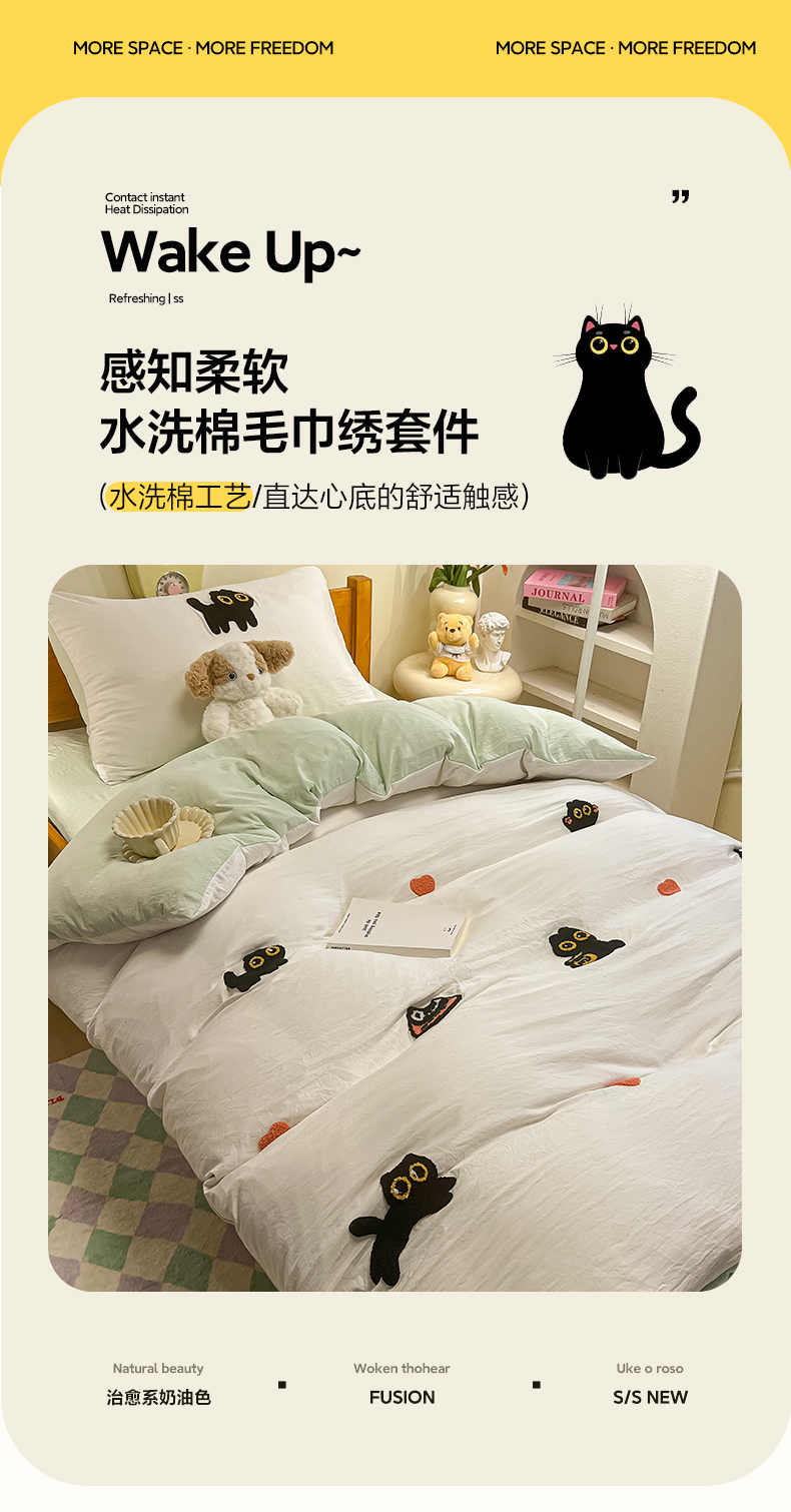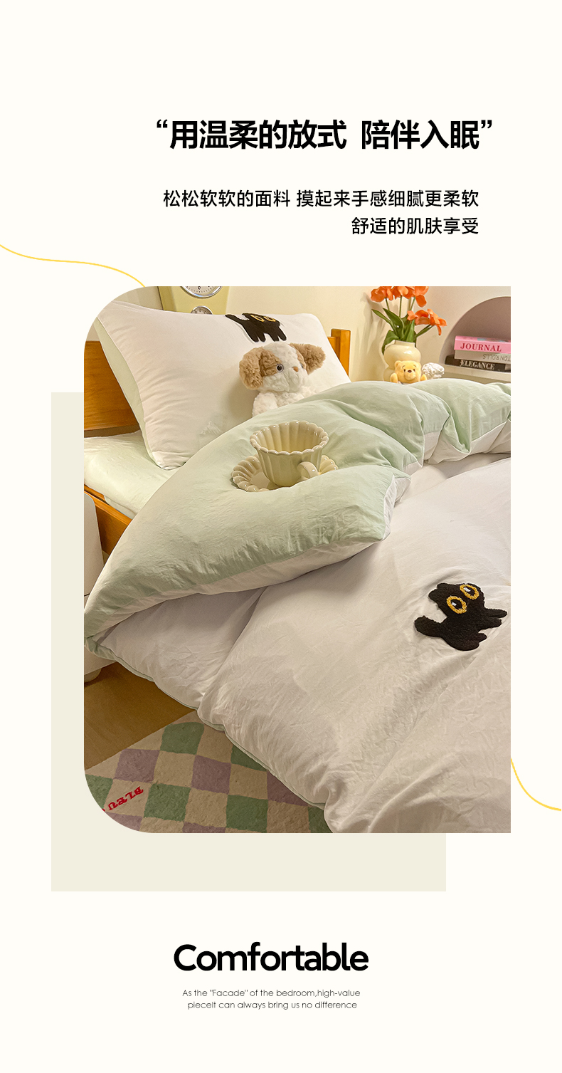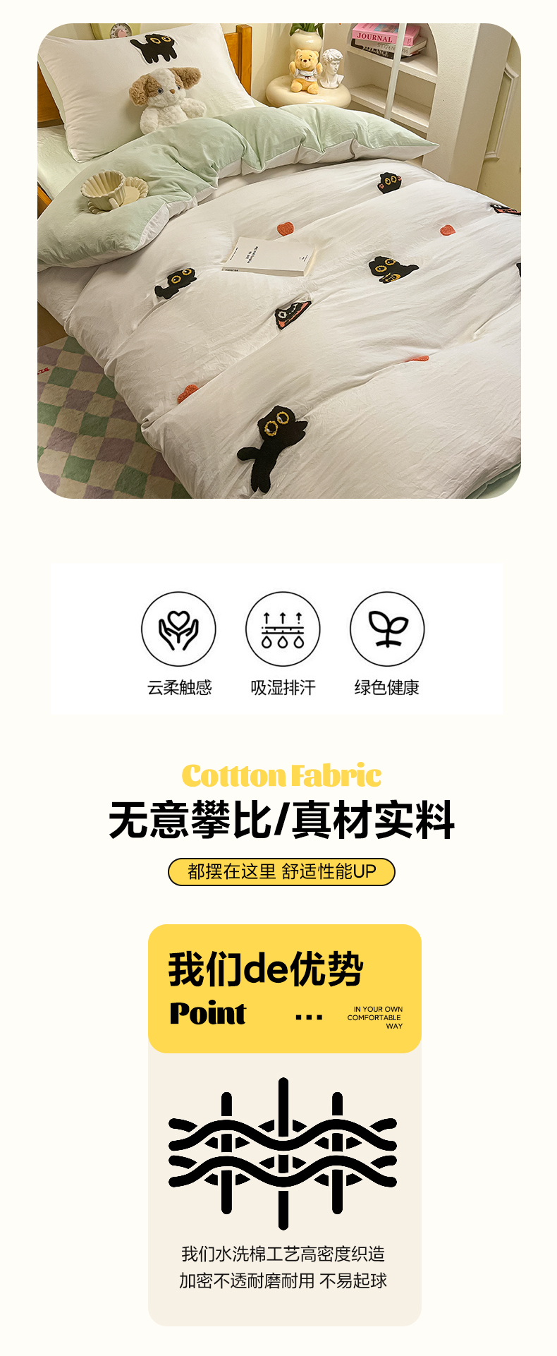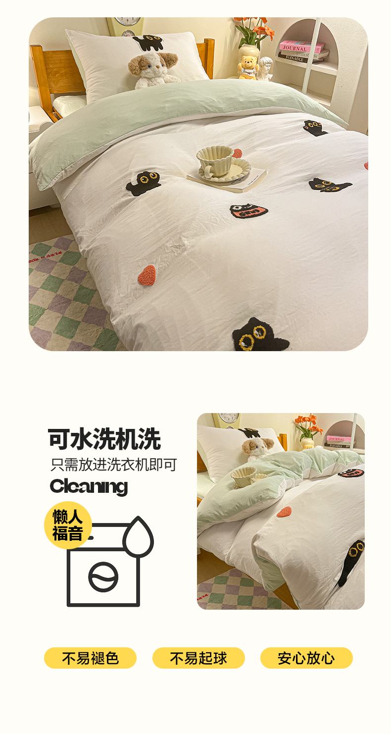 • 91家纺网 家纺一手货源 找家纺 韩巢家纺 2024新款学生宿舍寝室上下铺超柔水洗棉毛巾绣单件被套-幸运猫 幸运猫白绿