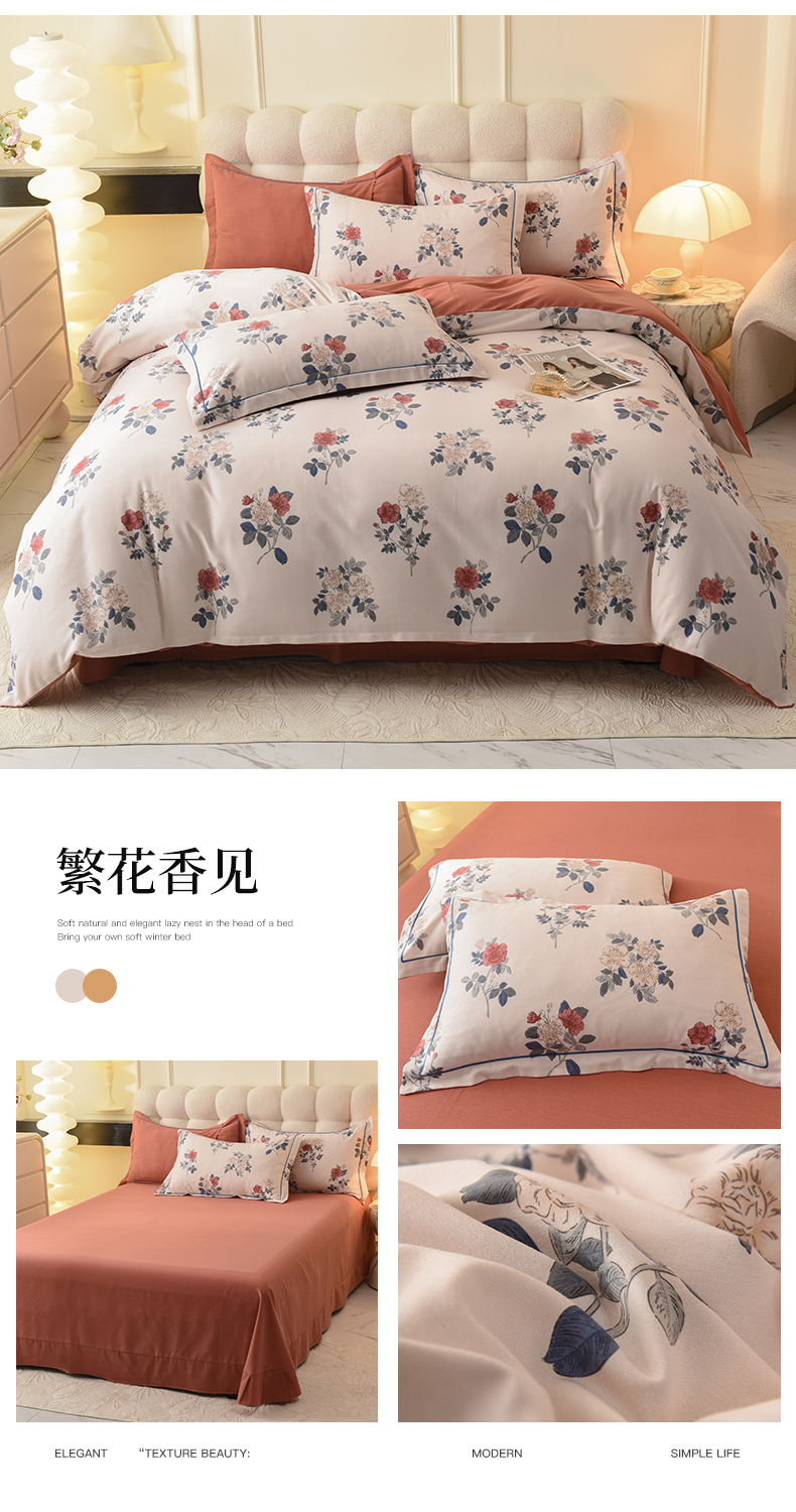 帛美家纺 2024新款加厚纯棉全棉磨毛印花四件套 繁花香见