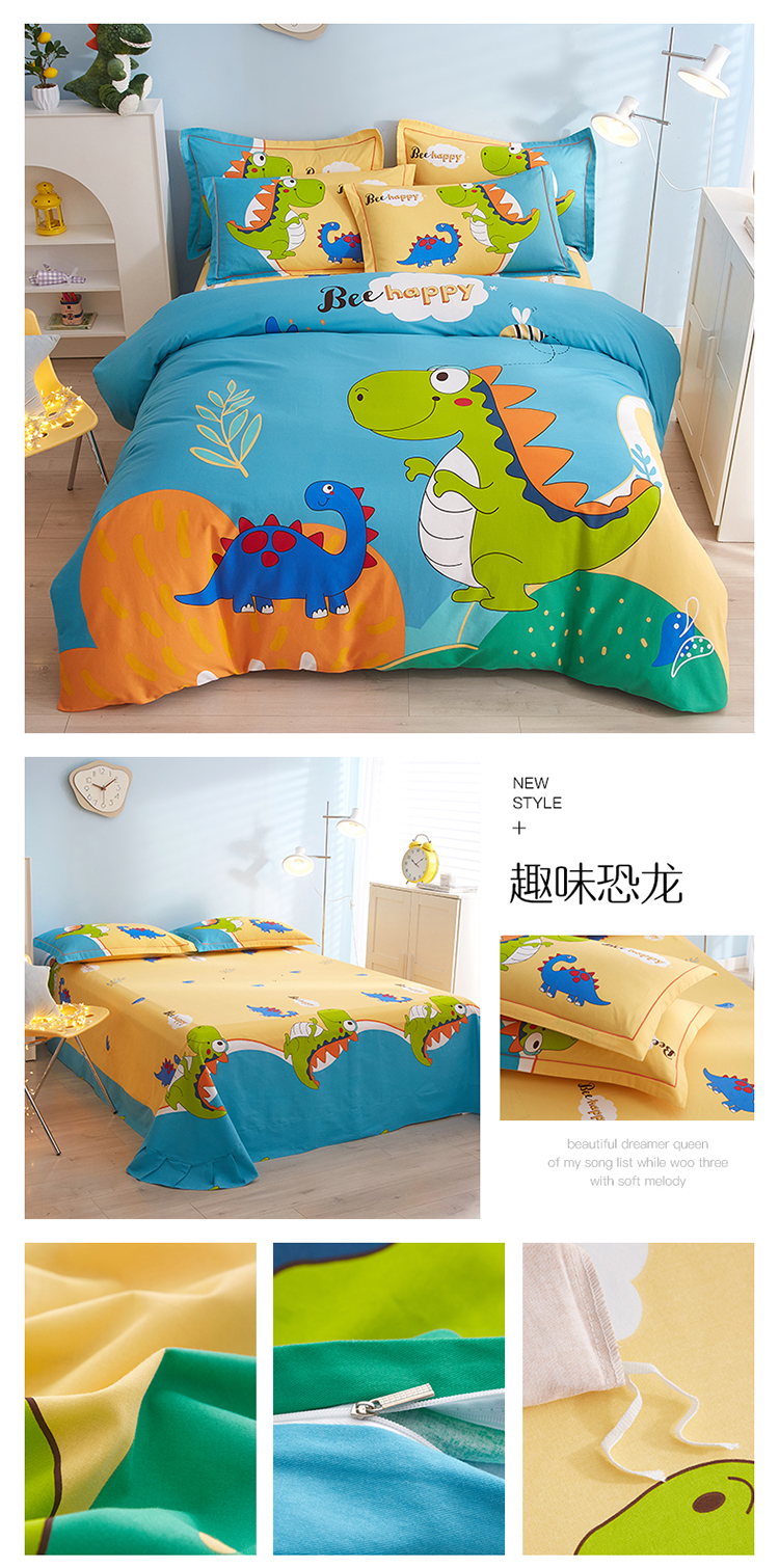 商品名称:格里芬家纺 2025新款全棉加厚大版磨毛纯棉磨毛四件套 趣味恐龙