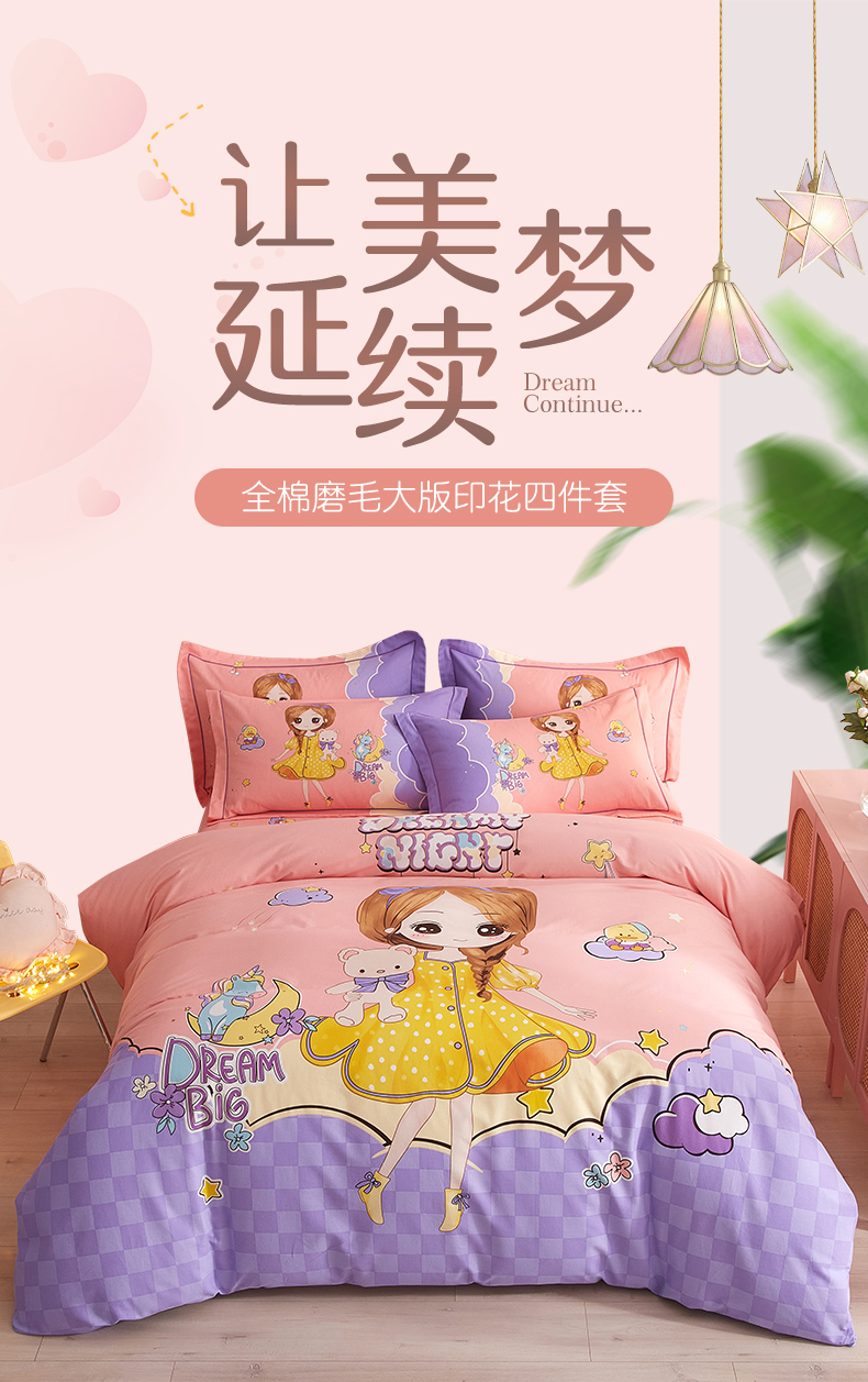 格里芬家纺 2025新款全棉加厚大版磨毛纯棉磨毛四件套 玥玥公主
