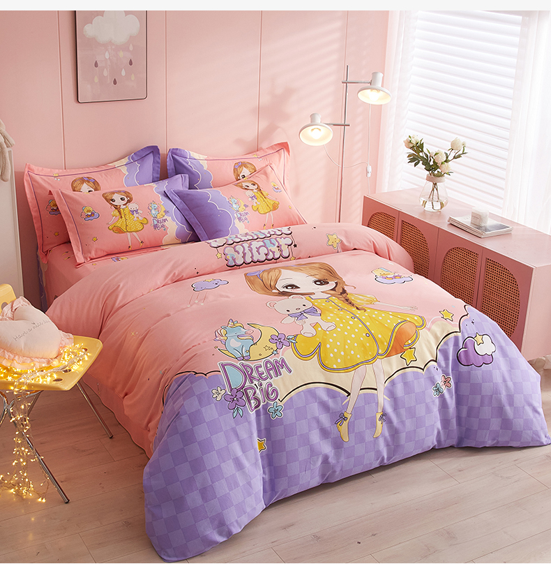 (总)格里芬家纺 2025新款全棉纯棉加厚油画风大版卡通印花四件套 (控价标准不低于238元),墨宝妞妞-绿,墨宝妞妞-粉,魔仙宝-紫,魔仙宝-粉