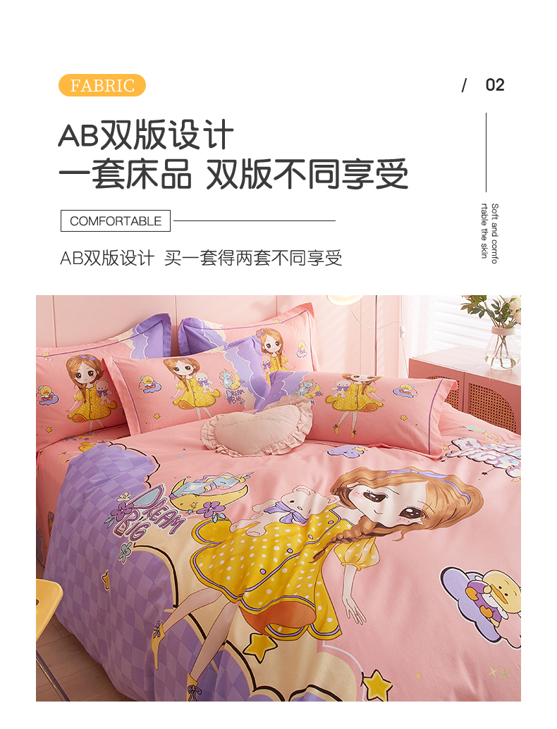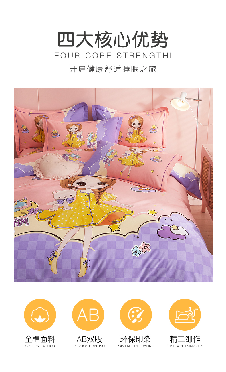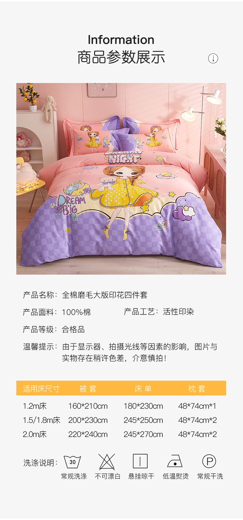 商品名称:格里芬家纺 2025新款全棉加厚大版磨毛纯棉磨毛四件套 玥玥公主