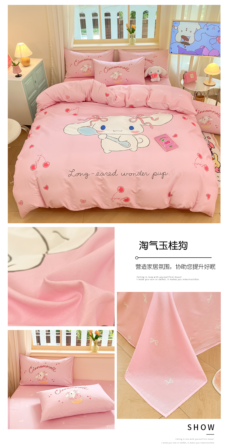 当前位置: 91家纺网 > 商品网购 > 床品套件 > 四件套 > 全棉普通四件套 > 桃子家居 2024纯棉大版三丽鸥卡通平网印花系列四件套 棉大版-D淘气玉桂狗