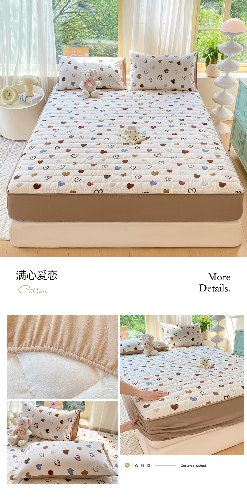 芷凡家纺 2024新款A类水洗云朵棉绗缝夹棉床笠 满心爱恋