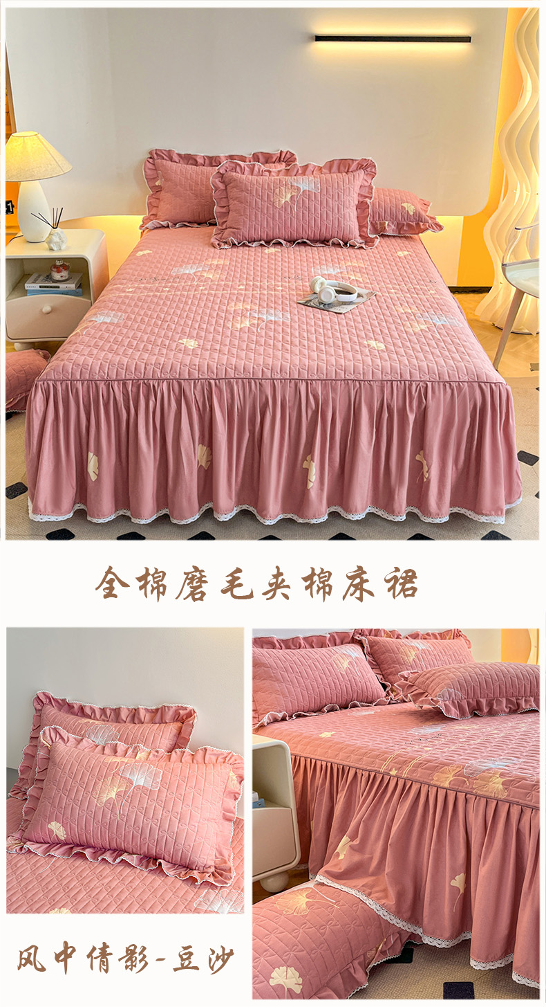 当前位置: 91家纺网 > 商品网购 > 床品套件 > 三件套 > (支持一件定制)2024新款加厚全棉夹棉磨毛纯棉床裙单件公主风印花防滑三件套 风中倩影-豆沙