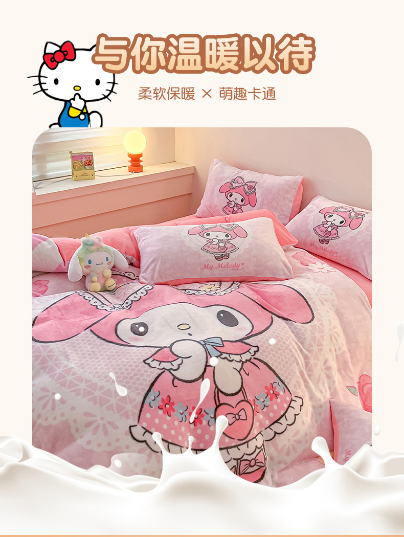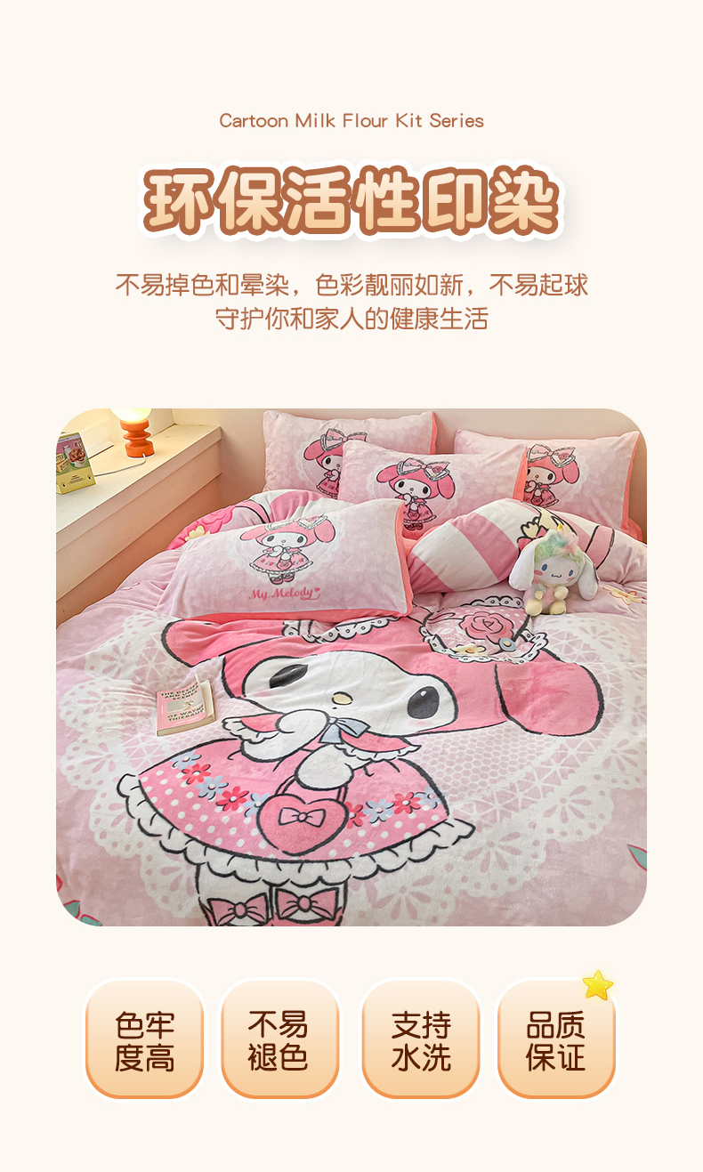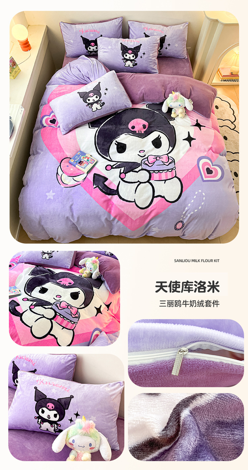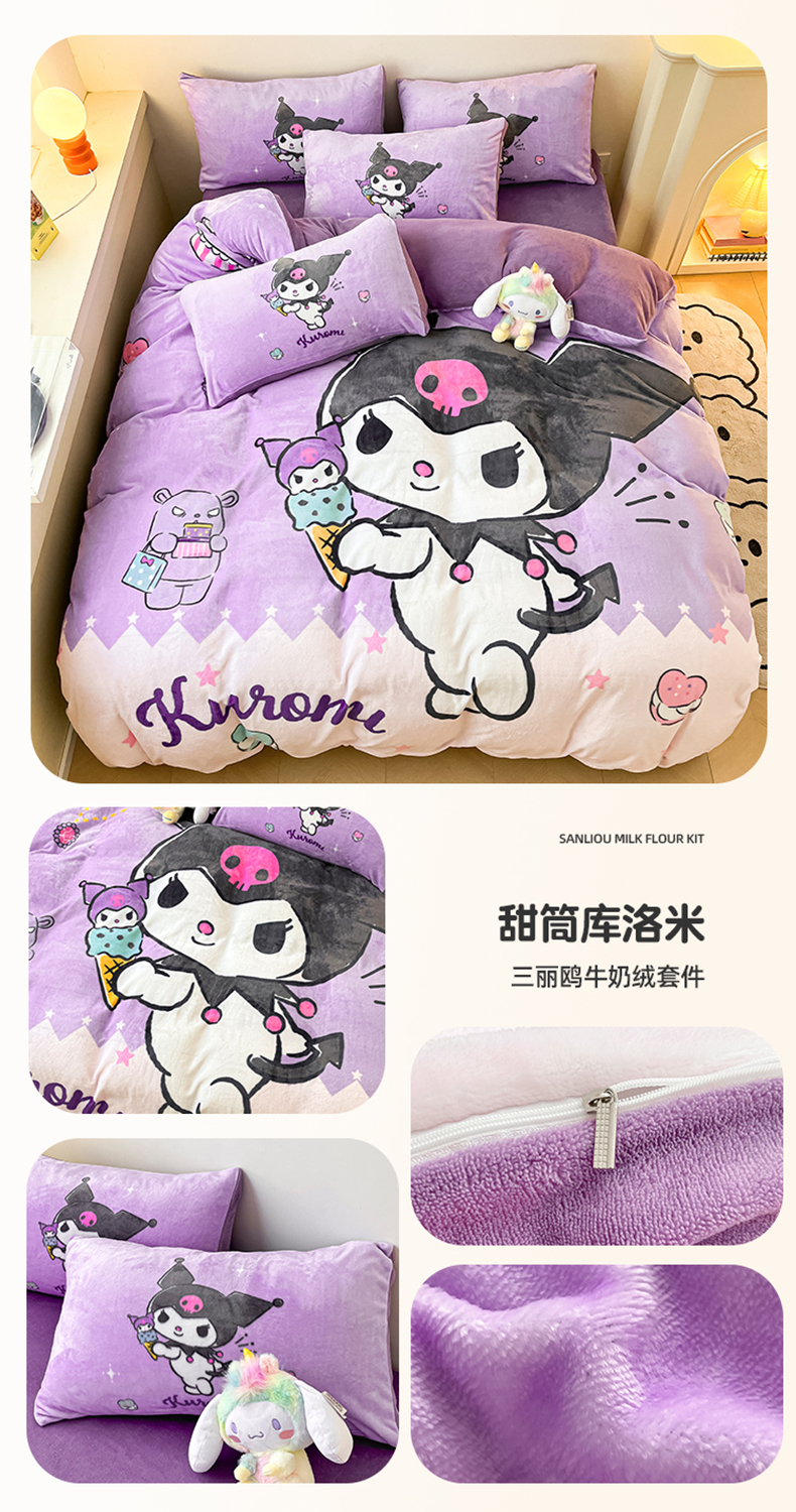 当前位置: 91家纺网 > 商品网购 > 床品套件 > 四件套 > 牛奶绒四件套 > 孩子王家纺 2024新款正版授权三丽鸥库洛米大版卡通学生宿舍双面加厚牛奶绒系列四件套--提供买家秀 少女美乐蒂