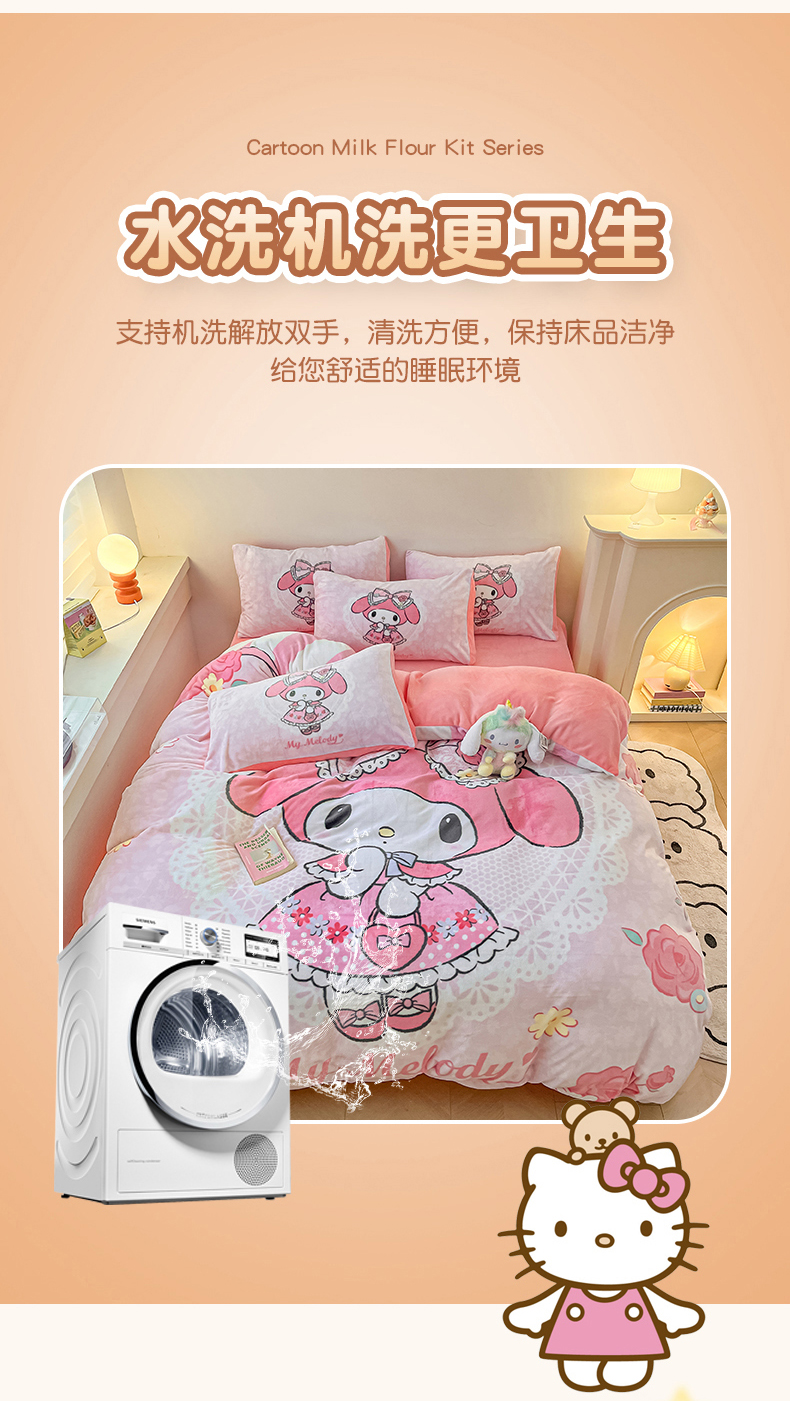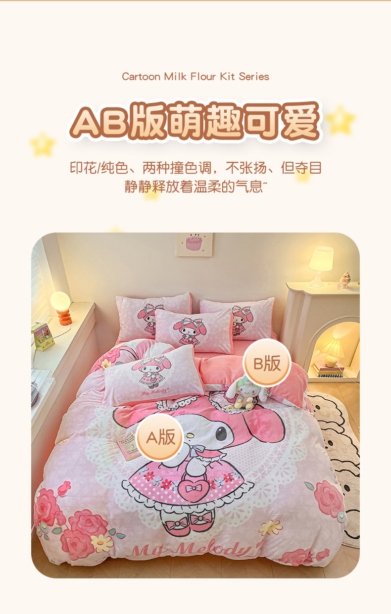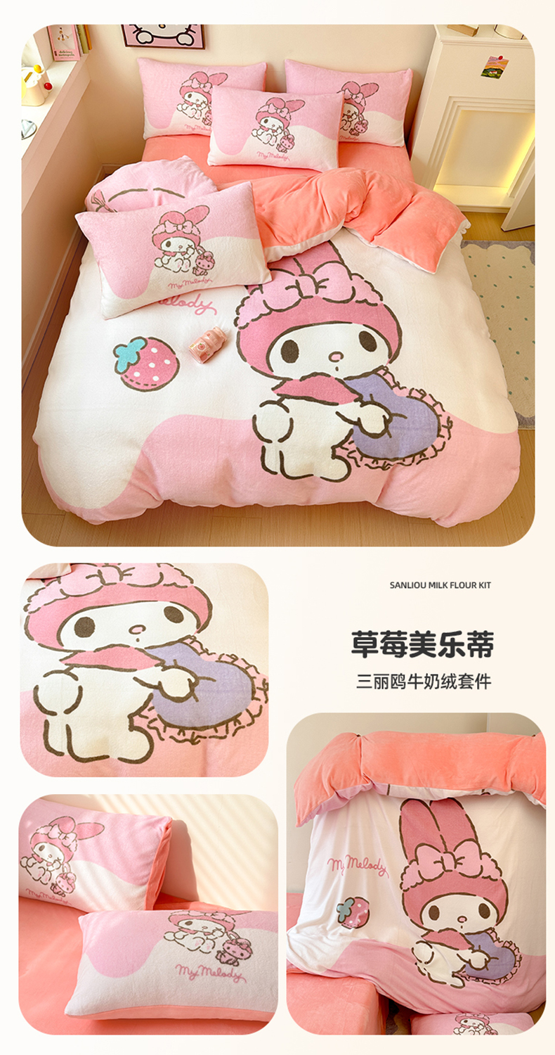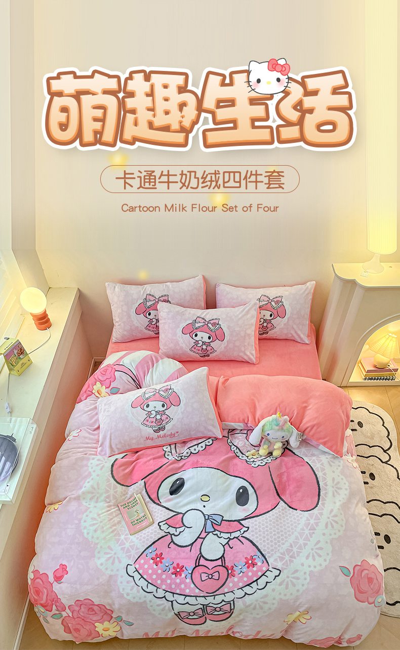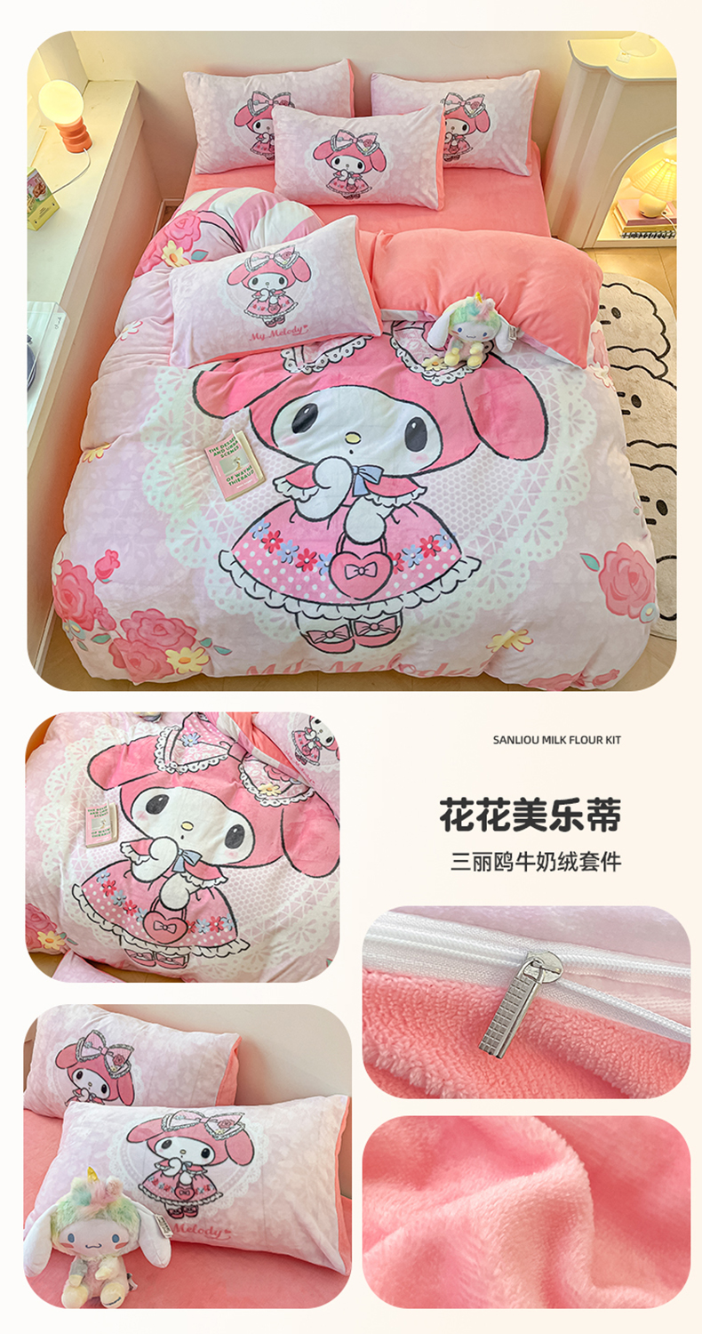 当前位置: 91家纺网 > 商品网购 > 床品套件 > 四件套 > 牛奶绒四件套 > 孩子王家纺 2024新款正版授权三丽鸥库洛米大版卡通学生宿舍双面加厚牛奶绒系列四件套--提供买家秀 少女美乐蒂