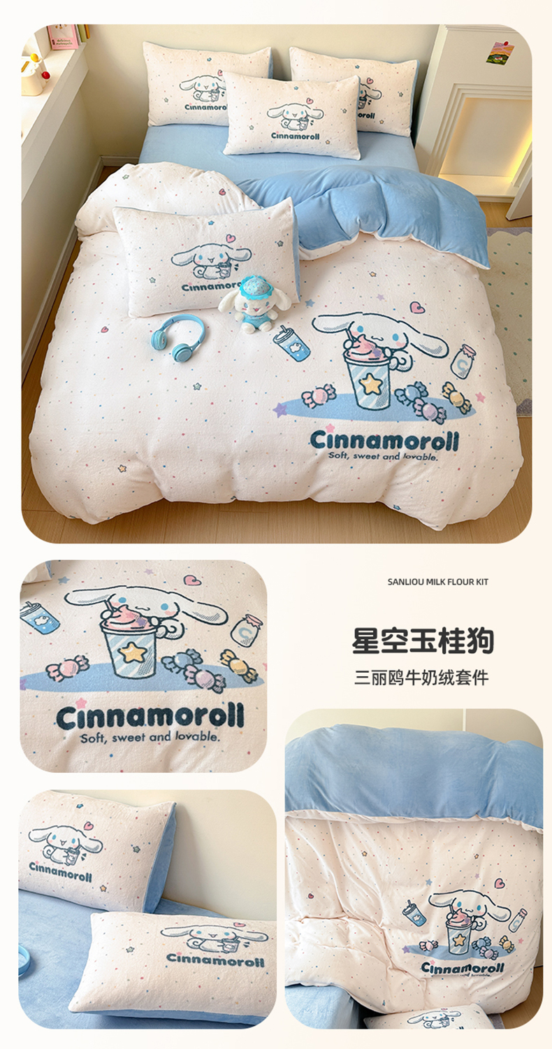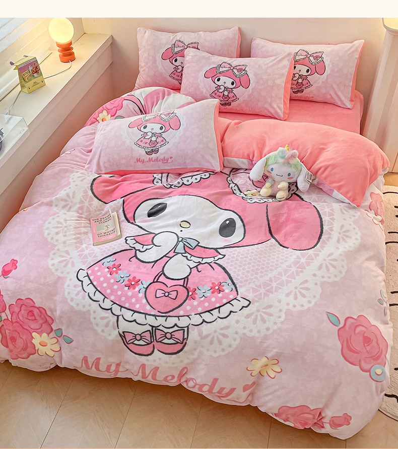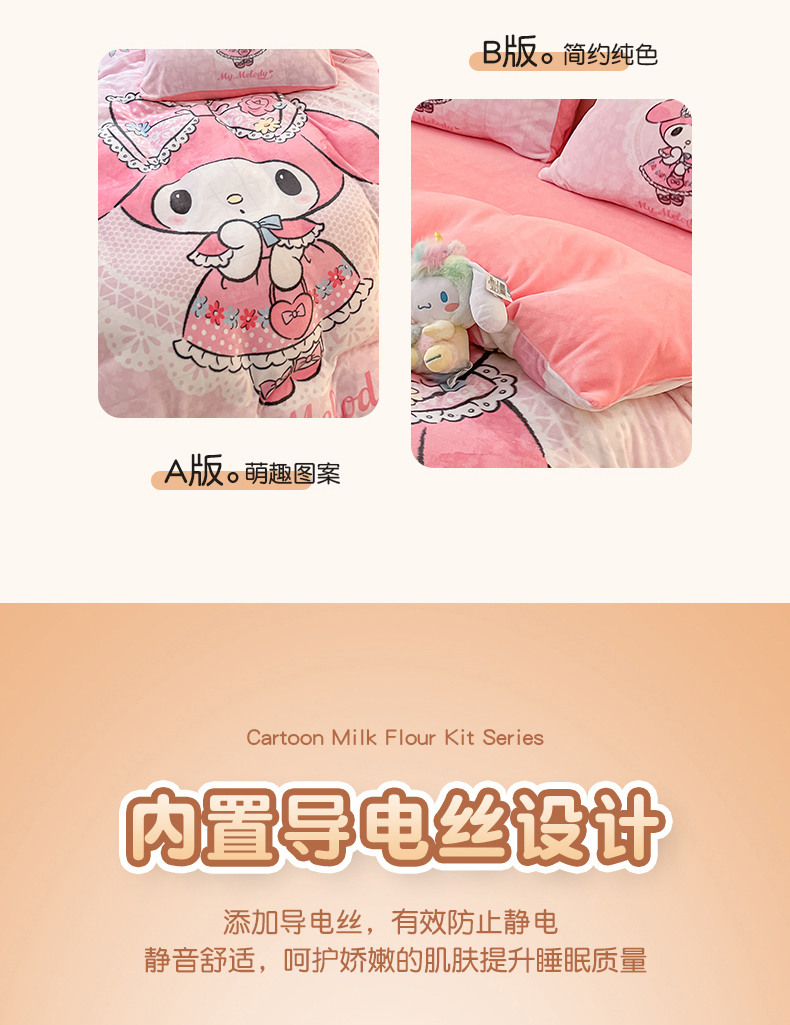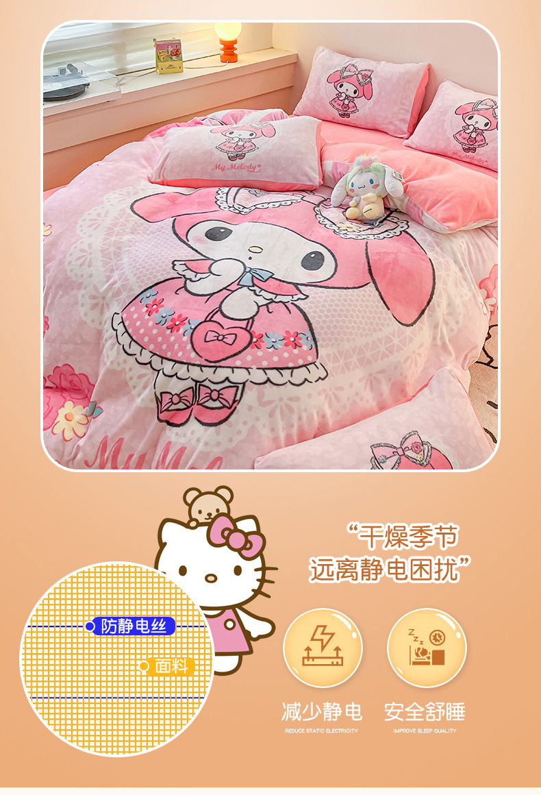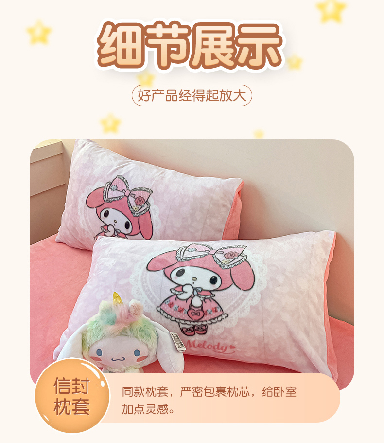当前位置: 91家纺网 > 商品网购 > 床品套件 > 四件套 > 牛奶绒四件套 > 孩子王家纺 2024新款正版授权三丽鸥库洛米大版卡通学生宿舍双面加厚牛奶绒系列四件套--提供买家秀 少女美乐蒂