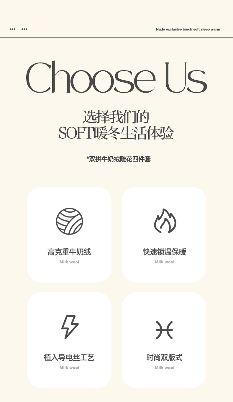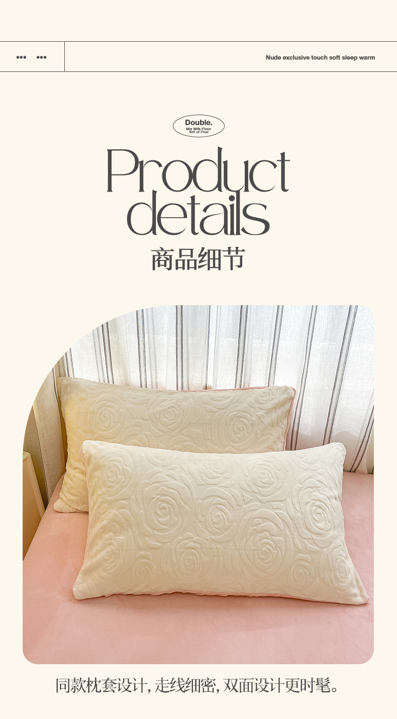 商品名称:绘萱家居 2025新款高克重雕花雕印纯色牛奶绒四件套双拼法莱绒珊瑚绒 山茶庄园-奶白粉