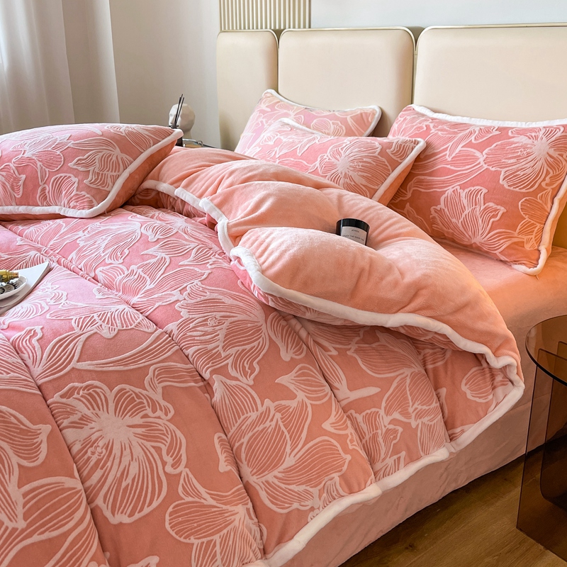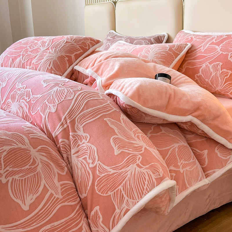 商品名称:诺梵 2025新款立体雕花绒四件套_控价标准高于149,加大高于159 艾莎-粉
