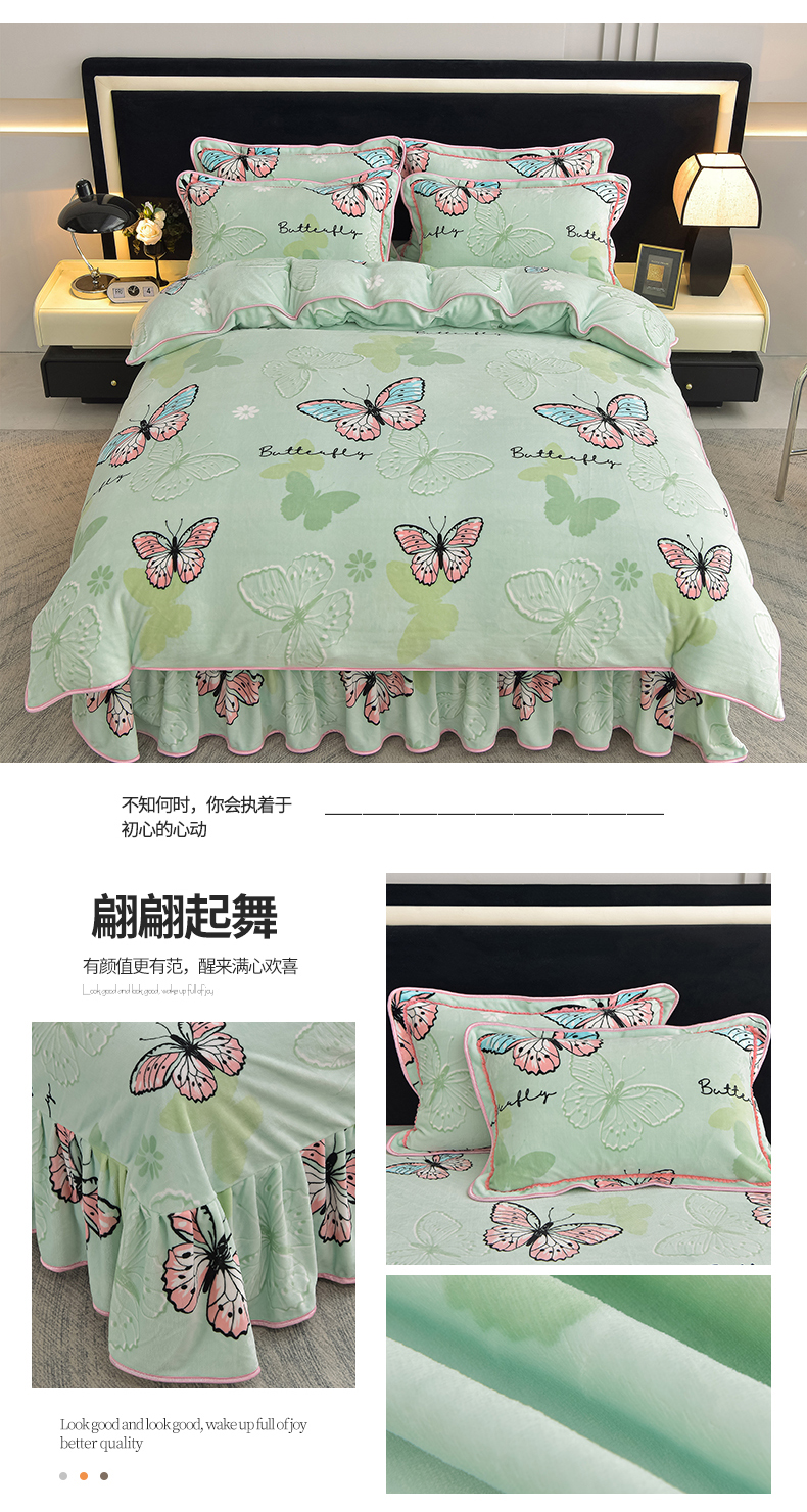 商品名称:佳品居 2025新款8斤床裙款牛奶绒四件套 翩翩起舞