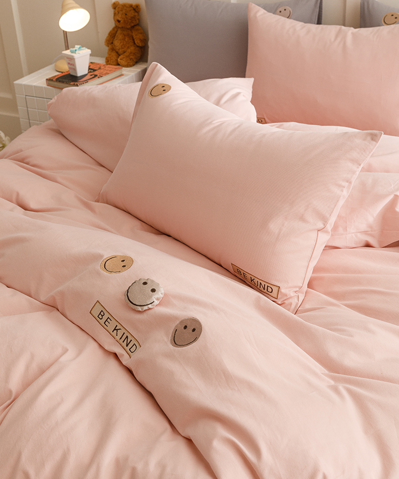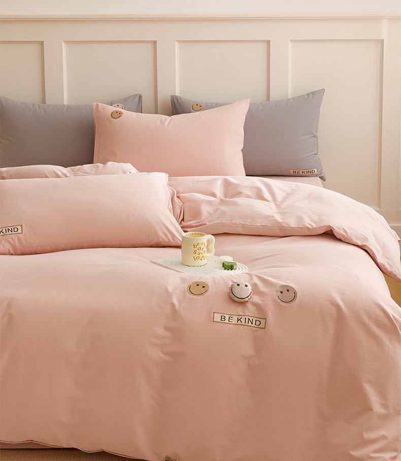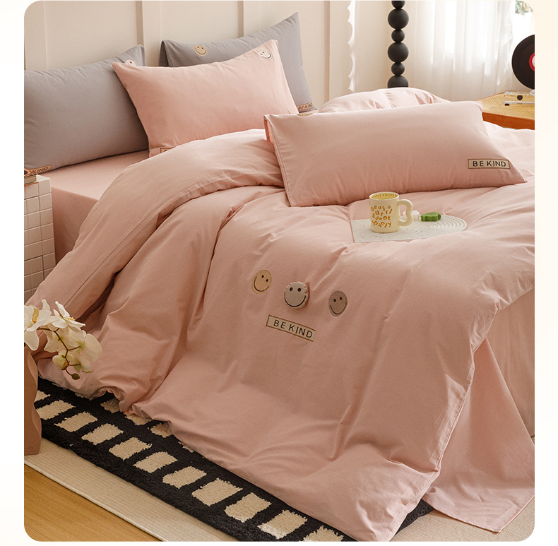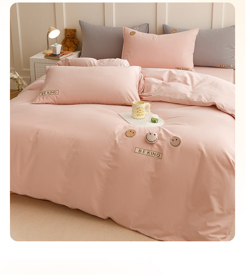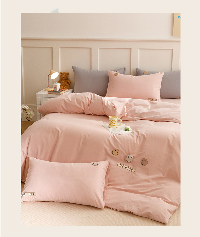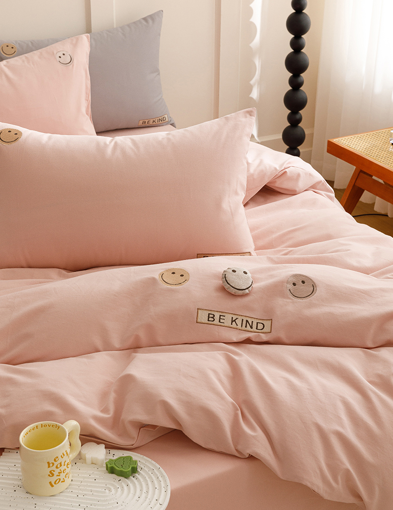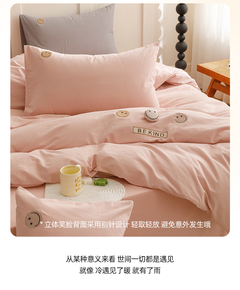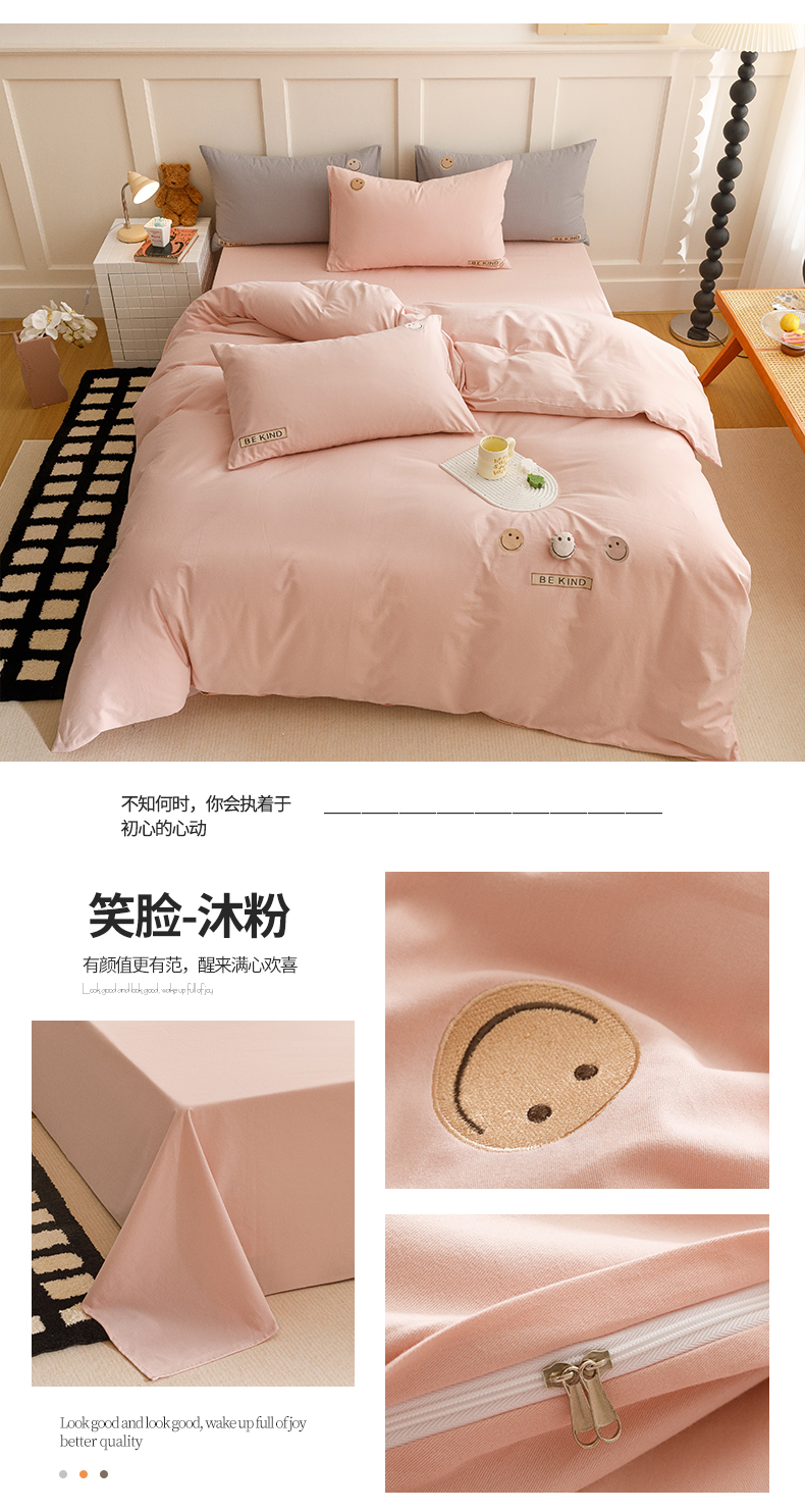 艾莱家纺 2024新款全棉柔顺磨毛立体刺绣四件套--笑脸-星语 笑脸-沐粉