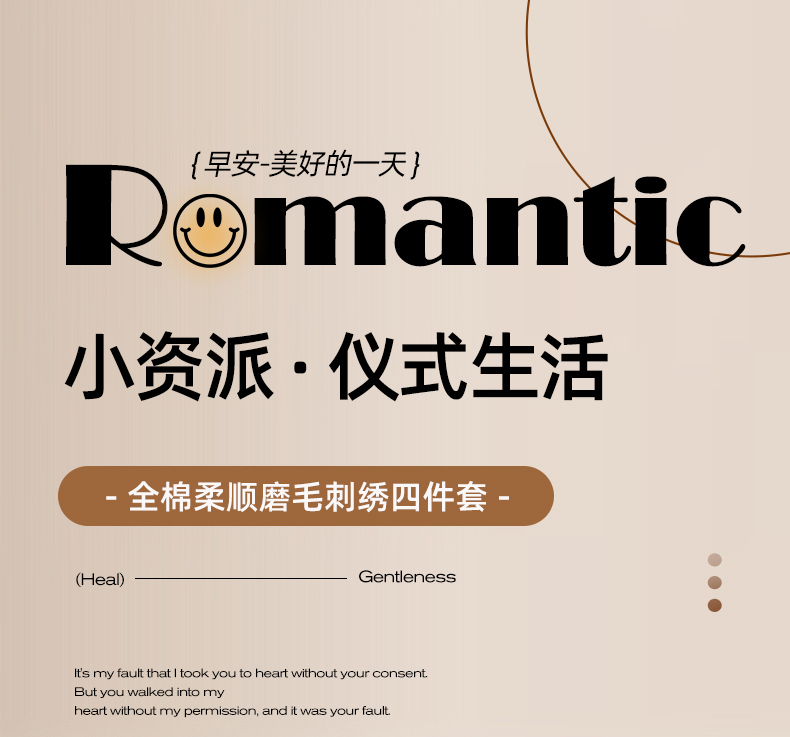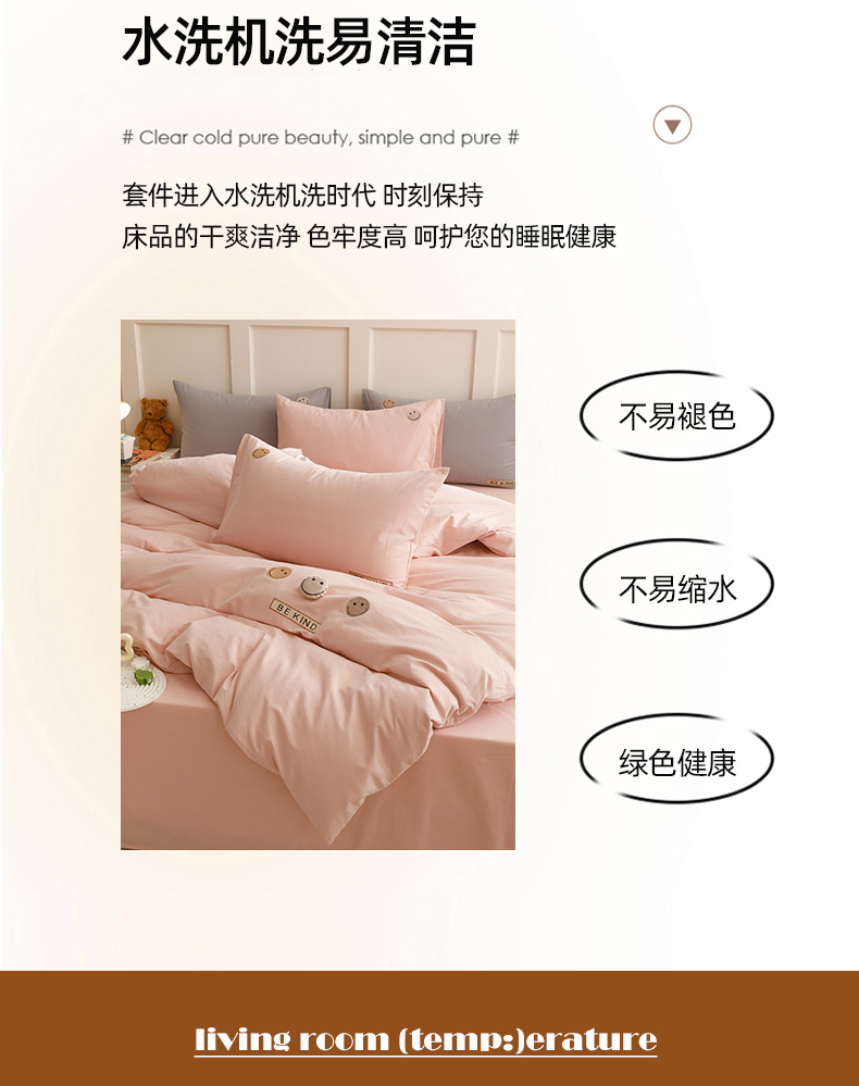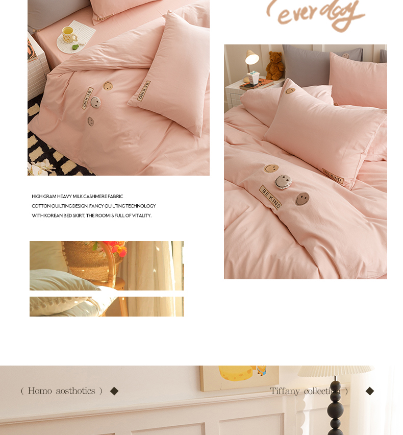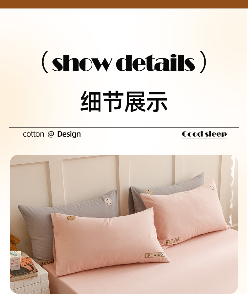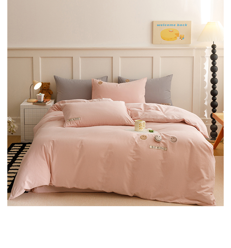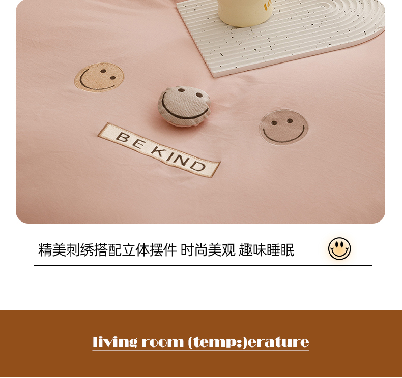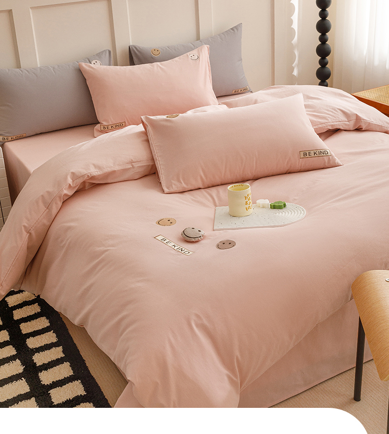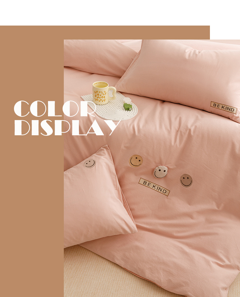 艾莱家纺 2024新款全棉柔顺磨毛立体刺绣四件套--笑脸-星语 笑脸-沐粉