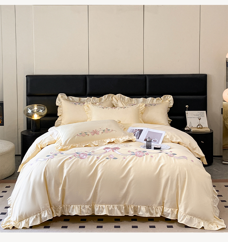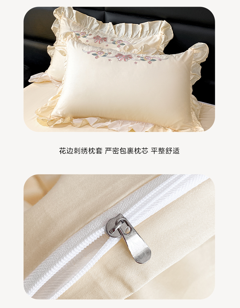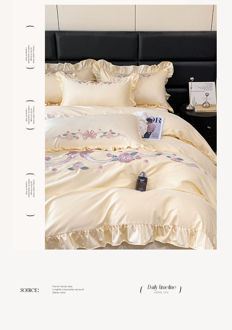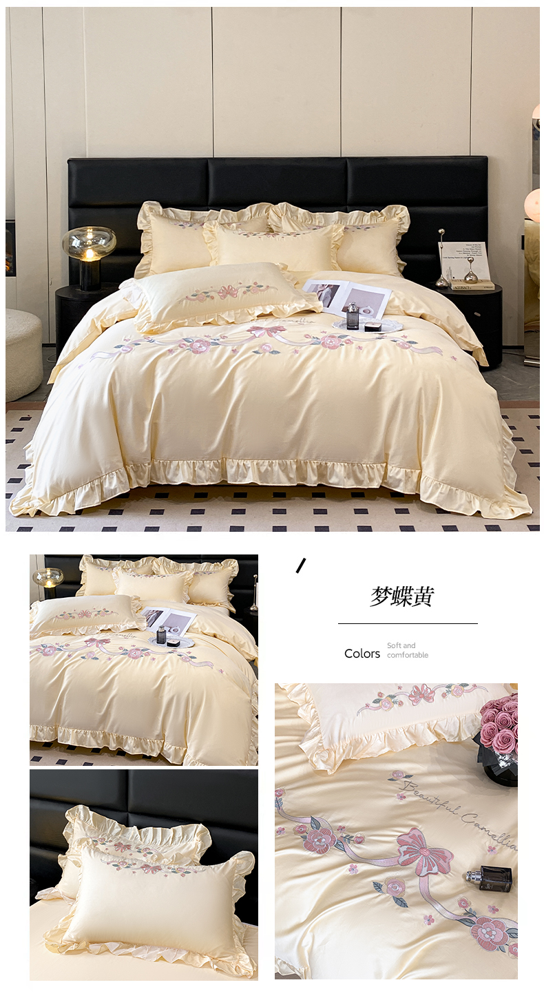 商品名称:金麦家纺 2024新款全棉刺绣花边系列四件套 梦蝶黄